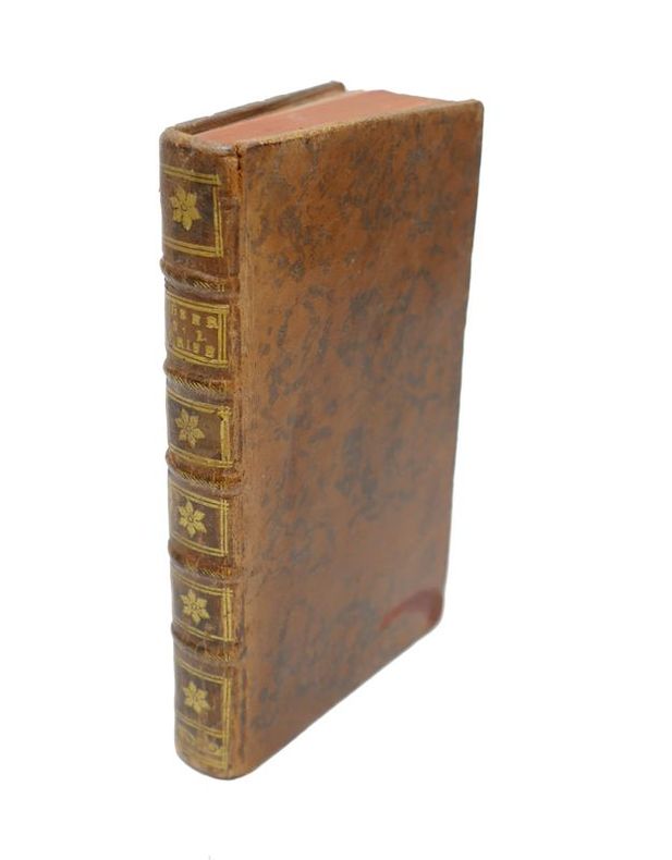 Paris, De Bure l'aîné, imprimerie Vve Delatour, 1748 ; in-12, veau marbré, dos à nerfs décoré et doré, pièce de titre havane , tranches rouges (reliure de l'époque) ; XLIV, [2], 258 pp., [1] f. blanc.
