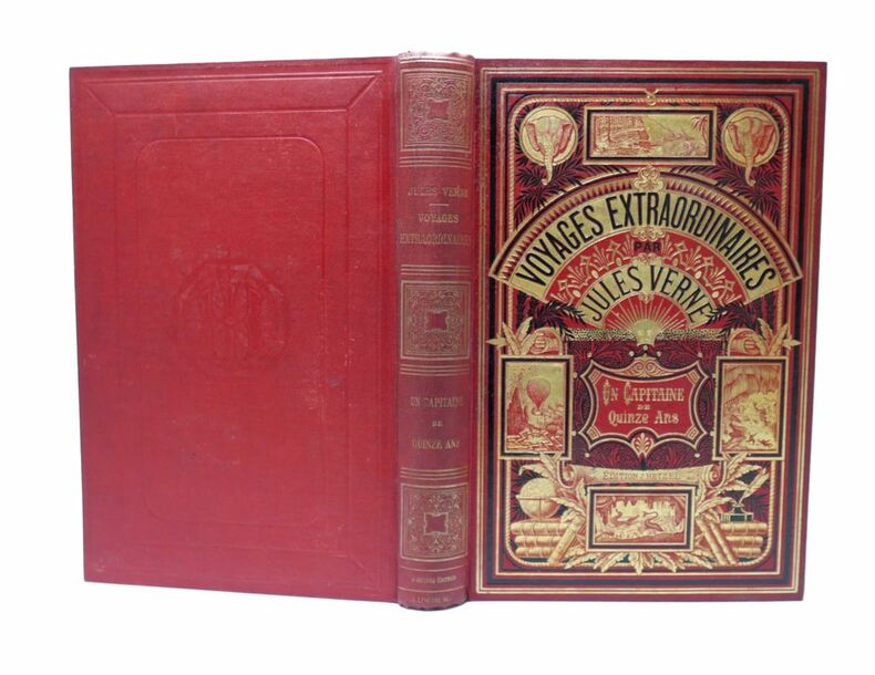 Paris, J. Hetzel, 1878, in-8, , Cartonnage éditeur rouge, or et noir [Lenègre], Volume double. Cartonnage "Aux 2 éléphants", type 3. Jauzac, 219. Coiffes frottées, dos légèrement insolé. Couverture rigide