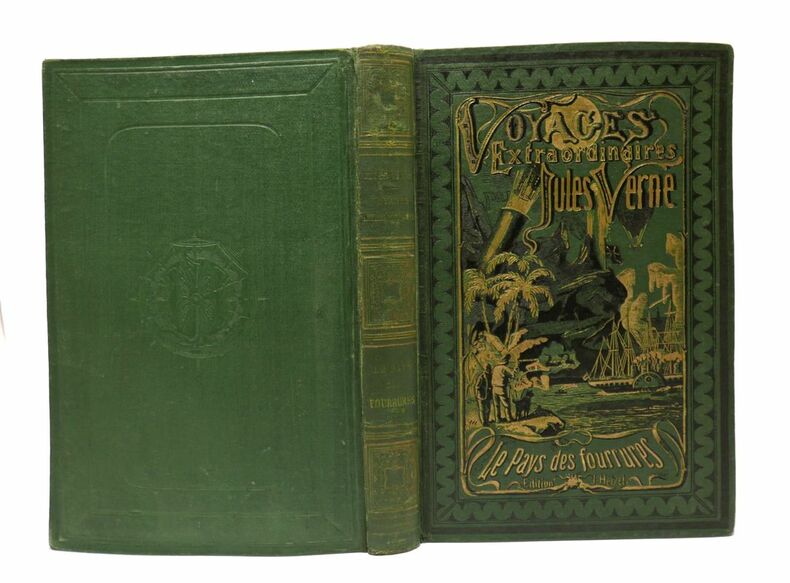Paris, J. Hetzel, 1873, in-8, , Cartonnage éditeur vert, or et noir, Première édition grand in-8 illustrée. Volume double. Cartonnage "À l'obus" de type 1". Jauzac, 192. Frottements, rousseurs. Couverture rigide