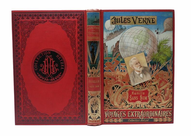 Première édition illustrée de 82 dessins de Tiret-Bognet, et une carte en couleurs du cours du Saint-Laurent. Catalogue EX in fine pour 1890. Cartonnage aux 2 éléphants de type Lenègre 3. Second plat de type Lenègre e. Ce cartonnage n'a connu que la couleur rouge. Quelques rousseurs éparses sur un papier bien blanc. Cette édition porte une étiquette ajoutée sur le cartouge corrigé, Une famille sans nom, devenant Famille sans nom avec la nouvelle étiquette. Belle plaque supérieure, aux ors bien nets. Coins bien pointus et rigides. Tranches dorées régulières. Dos uniformément insolé mais aux ors bien présents. Coiffes légèrement repliées. Beau second plat, sans défaut. Percaline brillante. Bel exemplaire, bien ferme et solidaire. Histoire d'une famille française du Canada pendant la rébellion des Patriotes (1837-1838) contre l'injustice britannique. Un des titres les plus graves de l'auteur, sans fin heureuse. - Photographies et détails sur www.Edition-Originale.com -