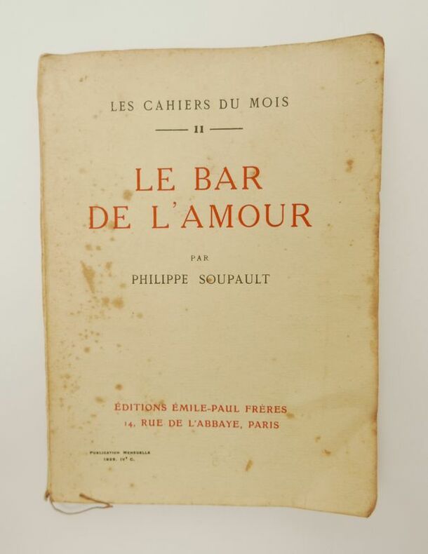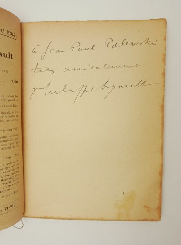 Paris, Émile-Paul frères, 1929, in-8, XII-92 pp, broché, couverture originale imprimée, Édition originale du numéro 11 de cette revue composée du texte de Philippe Soupault ainsi que du Cahier de la rédaction comprenant plusieurs critiques littéraires. Cet exemplaire est enrichi d'un envoi autographe signé de Philippe Soupault à Jean-Paul Palewski. Les Cahiers du mois ont paru de 1924 à 1927 sous la direction de François et André Berge et a publié de nombreux auteurs de l'époque tels Marcel Arland, François Mauriac ou encore René Crevel. Complet de son prière d'insérer. Rousseurs, couverture un peu froissée, quelques minuscules déchirures marginales. Couverture rigide