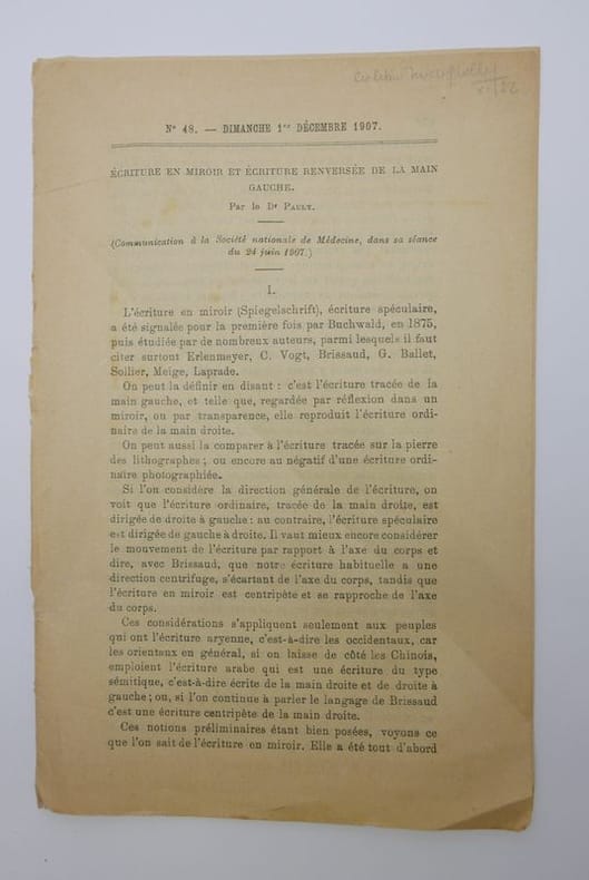 S.l, Société nationale de Médecine, 1907, in-8, 878-892, Broché, Tiré à part d'une communication effectuée à la Société de médecine le 24 juin 1907. Il contient une illustration en noir à pleine page. Traces de pliures. Couverture rigide