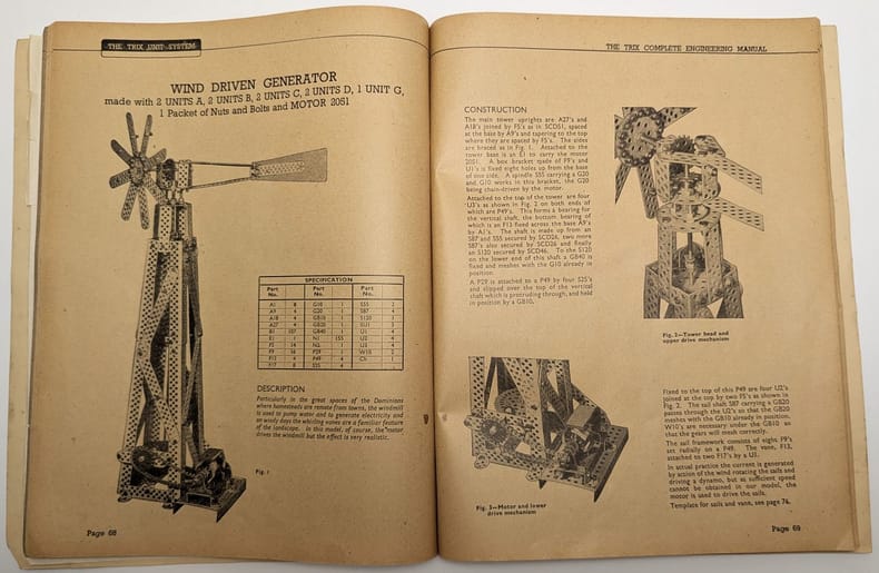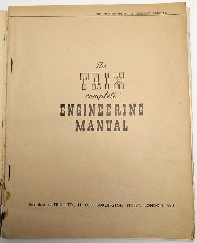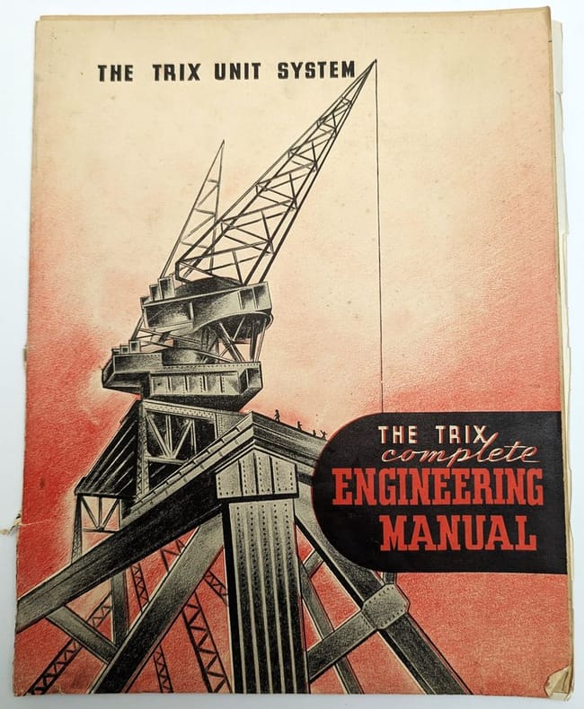 Londres, Trix LTD, [vers 1950], in-4, 11 pp, Broché, couverture originale illustrée en couleurs, Manuel en anglais illustré en noir pour un jeu de construction pour enfants. Couverture un peu défraîchie, dos décollé. Couverture rigide