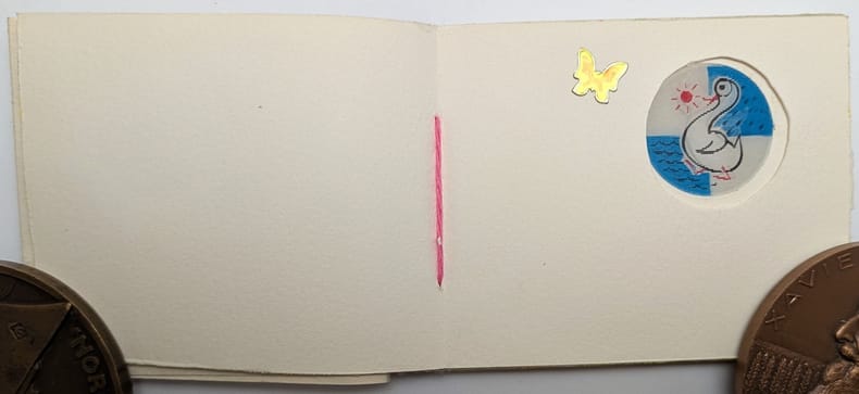 S.l, éditions du batibec, 1994, in-12, 26 pp, Broché, couverture originale imprimée, Édition originale de ce livre d'artiste orné de trois vignettes collées et des illustrations en couleurs. Un des 75 exemplaires tirés, après 13 exemplaires de tête, signé par l'auteur à la justification. Bon exemplaire. Couverture rigide