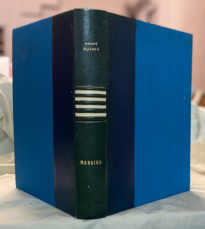 Jeanne Laffitte 1977 152 pages in8. 1977. broché. 152 pages. Marsiho est un essai lyrique et passionné dans lequel André Suarès écrivain marseillais et figure de la NRF rend hommage à sa ville natale. Loin des clichés il y convoque la dimension universelle grecque et provençale de Marseille tout en exprimant parfois des critiques acerbes sur son manque de culture. L'ouvrage initialement publié en 1933 est souvent associé aux illustrations de luxe du typographe Louis Jou