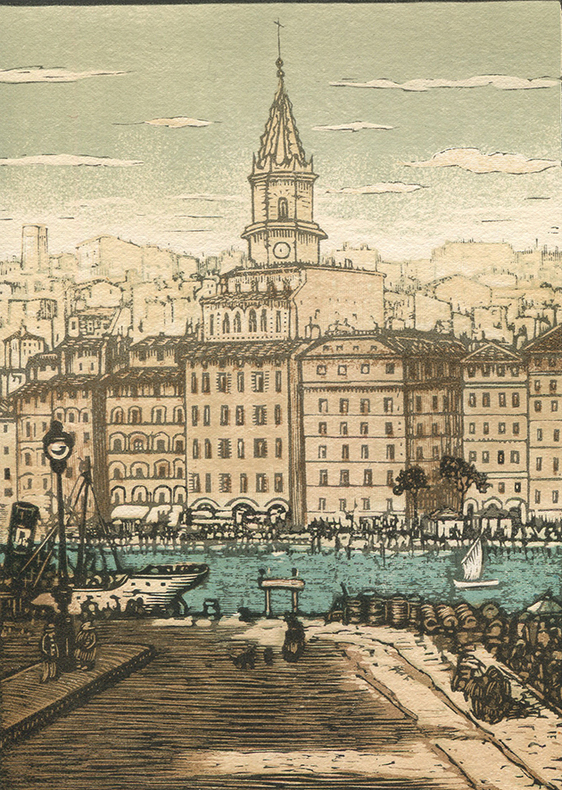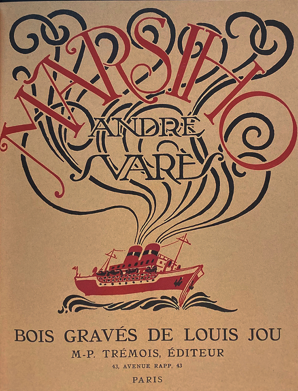 Edition originale, illustrée de bois de Louis Jou tirés en couleurs au réparge sur ses presses à bras. Les six planches hors-texte représentent des vues de Marseille. L'auteur prit une part active à la réalisation de l'ouvrage dans une collaboration rapprochée avec Louis Jou. L'un des 245 exemplaires sur vélin d'Arches (n°228) avec une suite en noir des bois originaux. Bel exemplaire. Carteret IV, 371; Monod, 10489; Feuille, n°69.