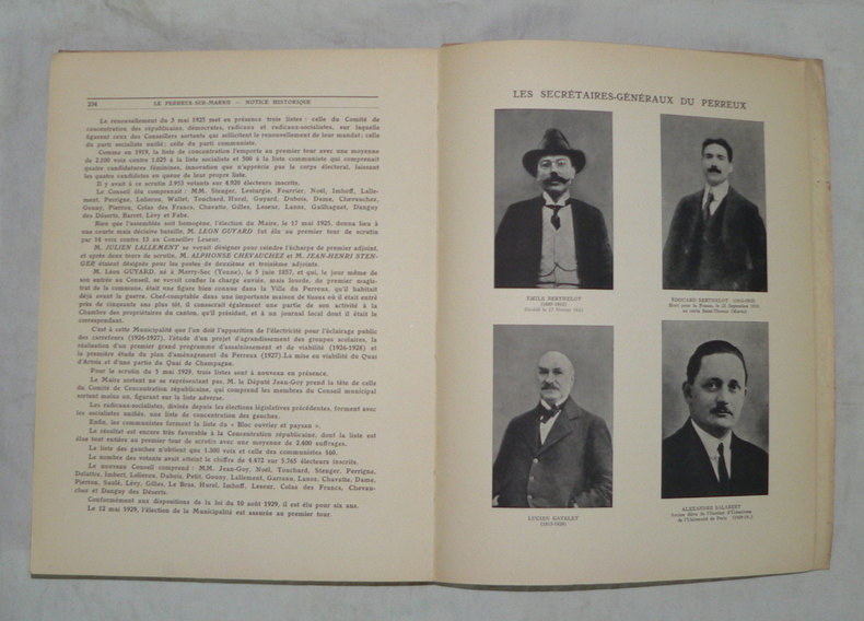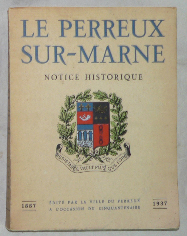 Le Perreux, 1937. Pet. in-4 br., 238 pp., couv. ill. des arm. municipales en coul., nombr. ill. en noir in-t. (plans, vues et portr.).