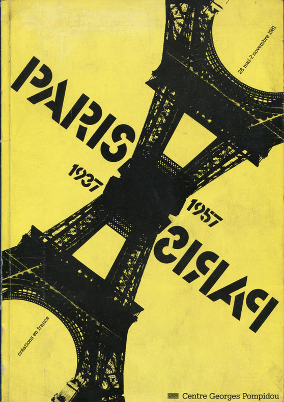 Centre Georges Pompidou, 1981. PETIT JOURNAL publié à l'occasion de l'exposition PARIS-PARIS 1937/1957 qui a eu lieu du 26 mai au 2 novembre 1981. Textes, illustrations, etc. Ce numéro est présenté dans une chemise cartonnée qui reprend l'illustration du catalogue de l'exposition dont la maquette est de Roman Cieslewicz.