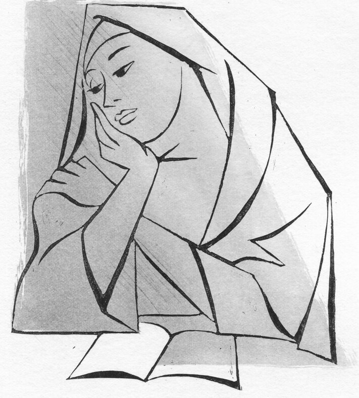 20 gravures originales en noir (dont une grande pour les deux plats de la couverture, et 6 hors-texte) de Marianne CLOUZOT. Tirage limité à 375 exemplaires sur vélin de Rives