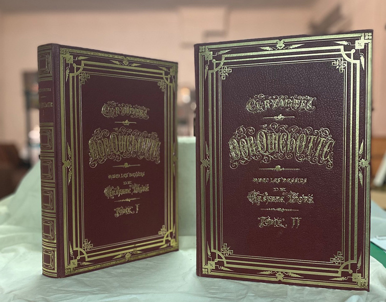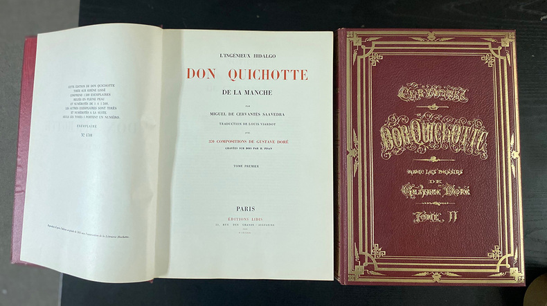 Traduction de Louis VIARDOT avec 370 compositions dans et H.T. de Gustave DORE. Exemplaire numéroté. Bonne reproduction, en parfait état, de cet ouvrage édité pour la première fois en 1863.