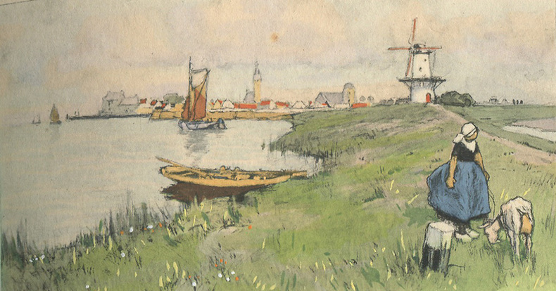 Edition d'art H.Piazza 1929/1932-Illustrations de Jouas pour le 1er et cassiers pour les 3 autres.Quatre volumes in-8° tirés sur Japon impérial,le charme de la Hollande avec une suite en noir.Reliés en 1/2 marocain rouge à coins par Flammarion,couvertures conservées,tr.dorées
