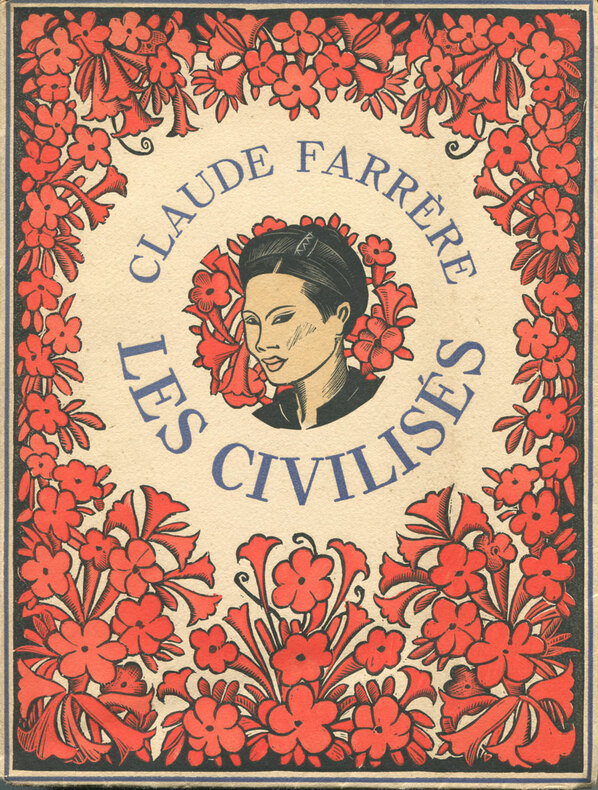 Cinq romans, format in 8, edités chez Flammarion, l'un des 2200 exemplaires sur papier pur fil des papeteries Outhenin Chalendre en 1930, non coupés non rognés. Dans une reliure non signée , mais digne d'un pro de la reliure !: superbe maroquin à gros grain rouge , fils dorés sur les plats, dos superbe, lisse sur le centre et gros nerfs sur les coiffes, d'une largeur de deux centimetres , tranches superieures dorées . Decors africaniste sur le dos , dans le gout art-deco, auteur et titre dorés , A l'interieur superbe encadrement et papier bradel assorti. La marche funebre,376 pages. Le chef,326 pages. Les petites alliées,414 pages. Mademoiselle Dax jeune fille ,302 pages. Les civilisés: 371 pages