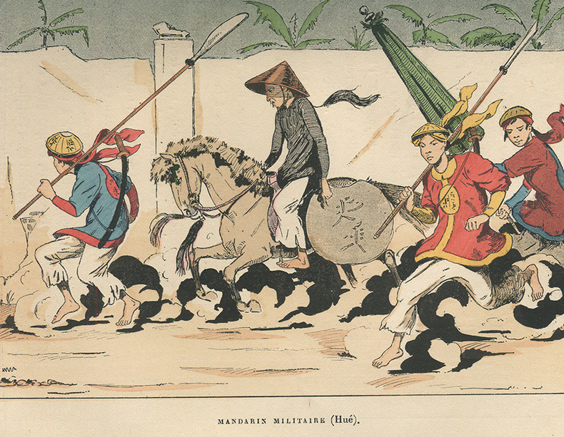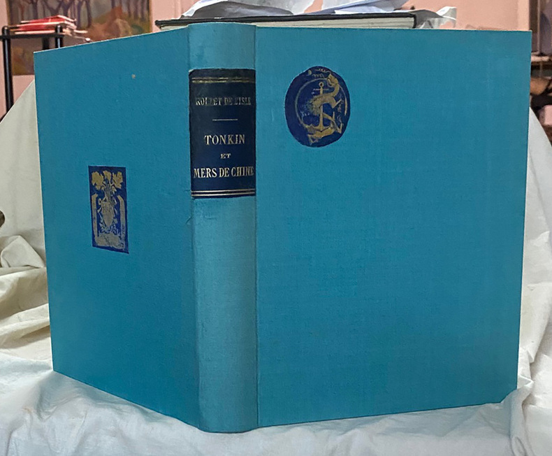 Edition originale (Cordier : Bib. Indosinica V, 2434-35). Journal de bord, relatant ses aventures. Nombreuses illustrations in-texte en noir et en couleurs. L'auteur, polytechnicien, puis directeur du service hydrographique de la Marine, se joignit à l'expédition de l'Amiral Courbet en mer de Chine et au Tonkin en 1883 et assiste à la prise de Hué. Il effectue sur les côtes méridionales de la Chine, à Formose et aux îles Pescadores, de nombreux relevés hydrographiques et revient en Europe en 1885. Très bon exemplaire.
