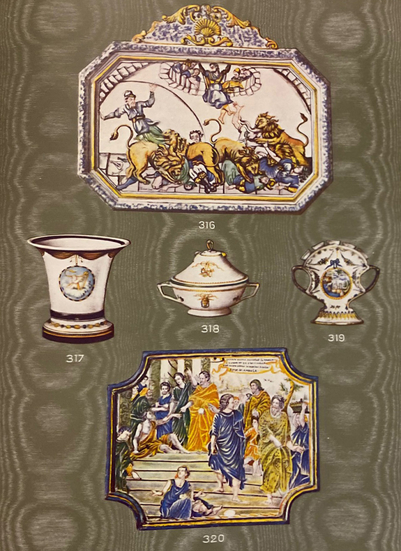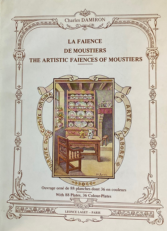Damiron, Charles: La Faience artistique de Moustiers (The Artistic Faiences of Moustiers). Paris: Laget, 1976. 233 pages, plus 86 colour plates. Reprint of the 1919 edition. Number 233 of an edition limited to 500 copies. Hardback. 33 x 25.5cms.