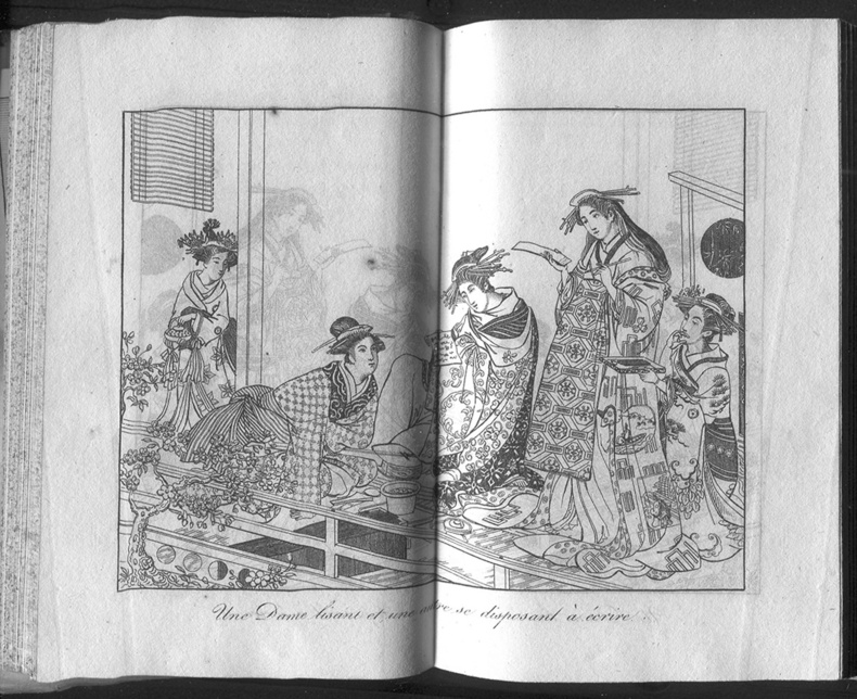 Edition originale ornée de 51 gravures, plusieurs inédites d’après des peintures japonaises dont 3 dépliantes, 9 à double page et 39 H.T. Rarissime et bel exemplaire