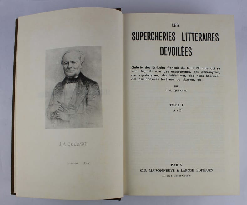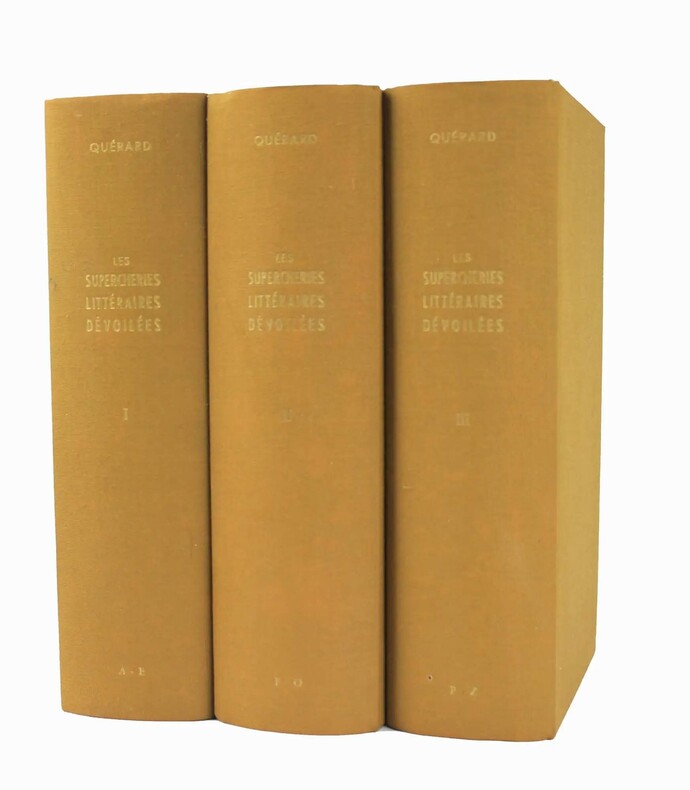 Paul Daffis, 1869-1870, 3 vol. in-8 rel. cart. brad. (17 x 26), 2000 p.,2ème édition considérablement augmentée publiée par G. Brunet et P. Jannet, 6 parties reliées en 3 volumes, texte sur deux colonnes (pour un total de 2000 pages), reliures usagées mais solides, coiffes abimées, intérieur propre sans rousseurs ni annotations, assez bon état.