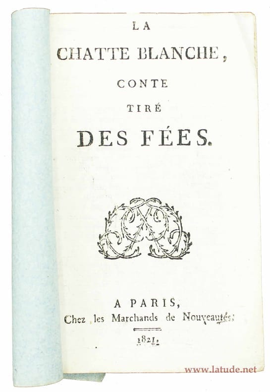 "La chatte blanche" est suivi de deux autres petits contes: "Les Fées" et de "Le Chasseur et la Fermière". Exemplaire court de la marge supérieure. Bel exemplaire.. /// In-16 de 71 pp. Broché, couverture bleue de l'époque. //// A rare chapbook edition of this fairy tale. Madame d'Aulnoy (1650-1705) most popular works were her fairy tales and adventure stories. Unlike the folk tales of the Grimm Brothers, who were born some 135 years later than d'Aulnoy, she told her stories in a more conversational style, as they might be told in salons. Much of her writing created a world of animal brides and grooms, where love and happiness came to heroines after surmounting great obstacles. These stories were far from suitable for children and many English adaptations are very dissimilar to the original.