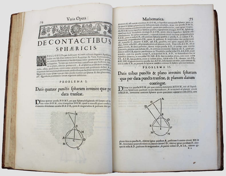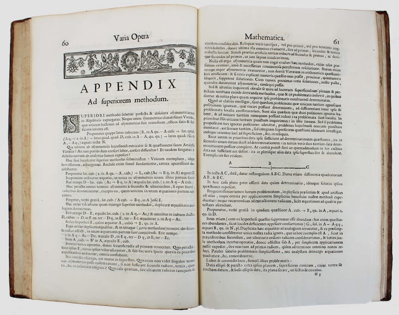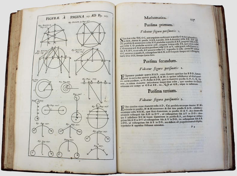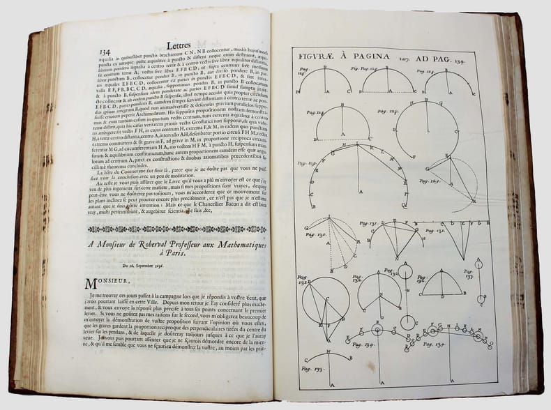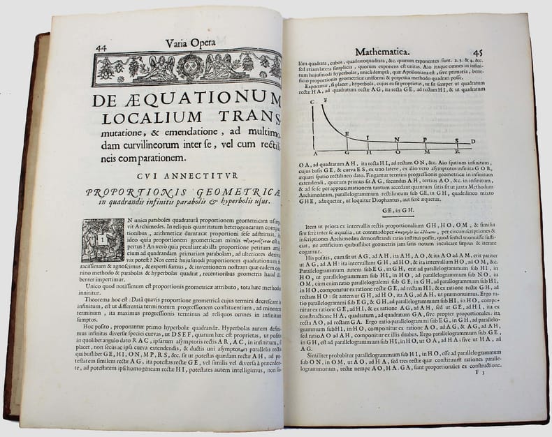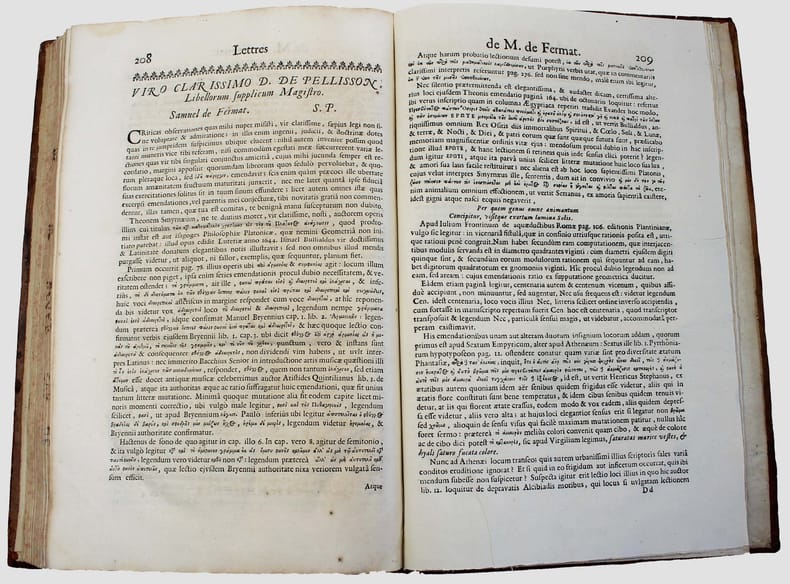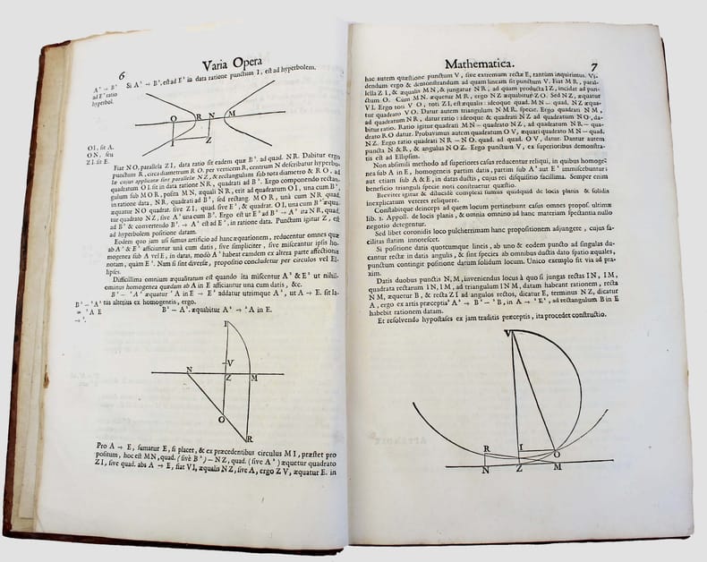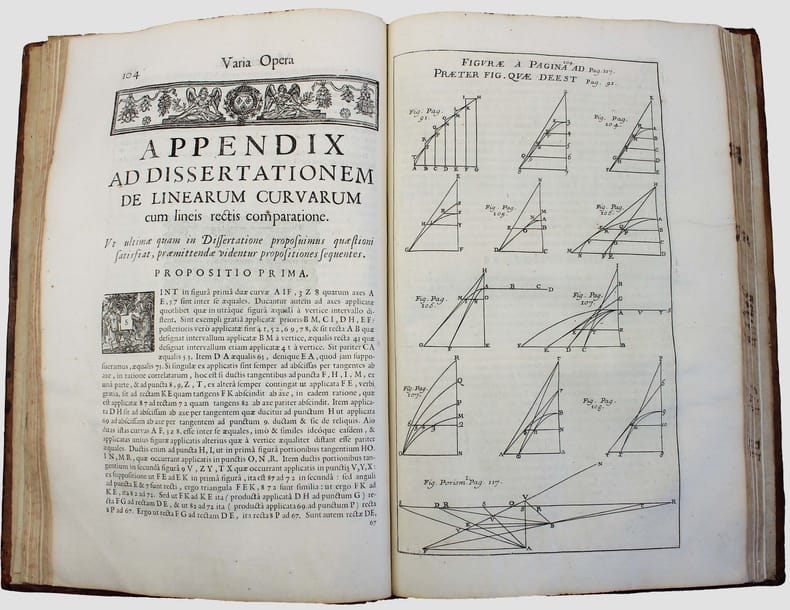 Première édition. Premier tirage avec la page de titre ornée d'une gravure sur cuivre et non d'un fleuron gravé sur bois comme dans le second tirage et les feuillets a2 et e2 avec un ornement gravé sur cuivre en tête. Ce recueil contient la majorité des oeuvres mathématiques de Pierre de Fermat (1601-1665). Elles sont ici publiées pour la première fois. "Après sa mort, les oeuvres et la correspondance que publie son fils Samuel ne représentent qu'une partie de sa production. Mais ce qui nous reste suffit pour classer Fermat au rang des plus grands mathématiciens de tous les temps" (Daumas, Histoire de la science). Les travaux publiés ici sont en latin, mais la plupart de sa correspondance est en français. Exemplaire sans le portrait, comme la plupart des exemplaires, et ceux des bibliothèques Horblit, Honeyman et Norman. Des déchirures sur le feuillet de titre consolidées au verso. Trois planches sont en facsimilé [les planches en regard des pages 134, 144 et 166] ainsi que 3 feuillets [feuillet H3 (p. 61/62), feuillet Dd1 (pp. 209/210), feuillet Ee2 (le dernier feuillet)]. Ces planches et feuillets facsimilés proviennent d'une édition soigneusement exécutée et publiée en 1861. Les photos 13, 14, 19 et 20 montrent des pages en facsimilés. Reliure frottée. Provenance : Monastère de Saint-Sever (Landes) de la congrégation de Saint-Maur (inscription sur le titre de 1702 et sur la tranche de l'ouvrage). Cet exemplaire a donc des défauts, mais son prix est très raisonnable, compte tenu du prix des exemplaires qui se sont vendus ces dernières années. En français dans le texte 115. /// In-folio de (12), 210, 1 f. bl., (4) pp., 5 planches dépliantes. Basane brune, dos à nerfs orné. (Reliure de l'époque.) //// First edition. First issue with a copper engraving on title - there is a woodcut ornament in 2nd state - and folios a2 and e2 with engraved headpieces. This collections marks the first publication of the majority of Fermat's mathematical papers, as well as his correspondence with Mersenne, Roberval, Pascal, Gassendi, and other contemporary mathematicians. For reasons that are still not clear, Fermat never wrote for publication, but restricted himself to circulating his ideas via letter and manuscript, and insisted on complete anonymity for the few works of his that made it into print during his lifetime." (Norman). After his death, the works and correspondence published by his son Samuel represent only a part of his output. But what remains is enough to rank Fermat among the greatest mathematicians of all time (Daumas, Histoire de la science). The works presented here are in Latin, though most of Fermat's correspondence is in French. This copy lacks the portrait, as do the majority of known examples, including those in the Horblit, Honeyman, and Norman collections. Small tears to the title page have been repaired on the verso. Three plates (opposite pp. 134, 144, and 166) and three leaves (H3, pp. 61/62; Dd1, pp. 209/210; Ee2, the final leaf) are supplied in facsimile, taken from a carefully executed edition published in 1861. Photos 13, 14, 19, and 20 show facsimile pages. Binding somewhat rubbed. Provenance: Monastery of Saint-Sever (Landes), Congregation of Saint-Maur (inscriptions on the title page, dated 1702, and on the edge of the book).This copy has some defects, but its price is very reasonable, considering the price of copies sold in recent years.