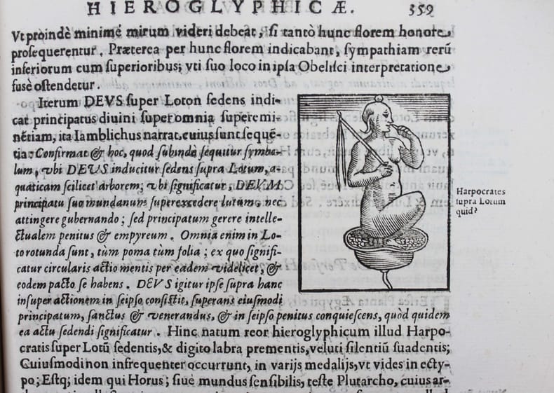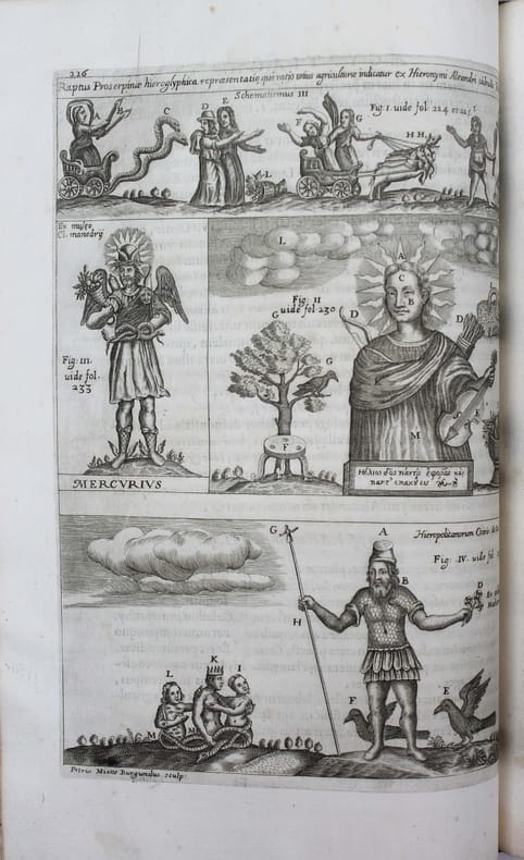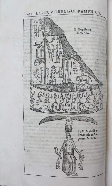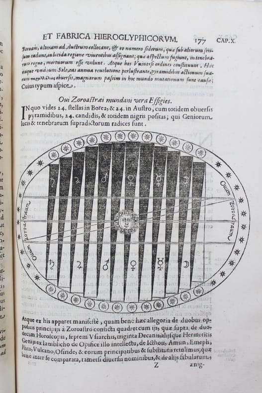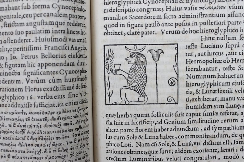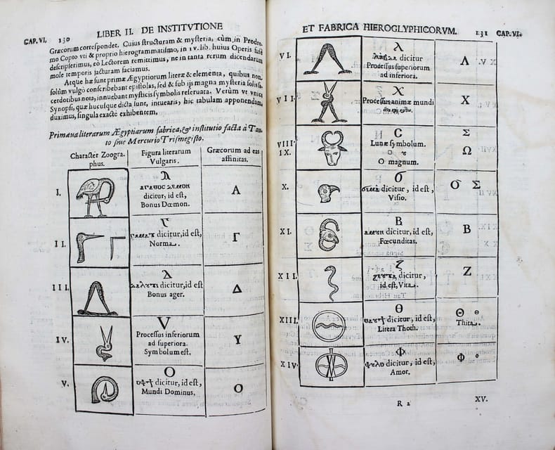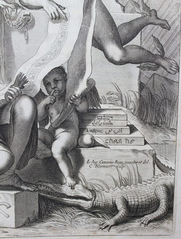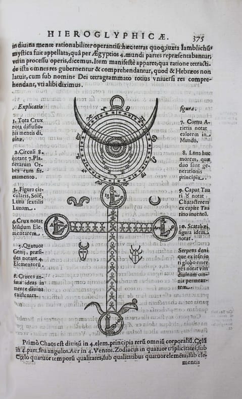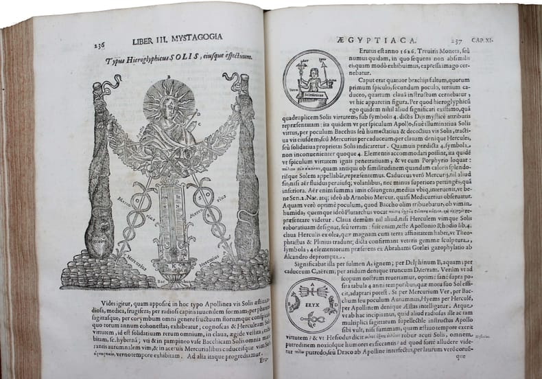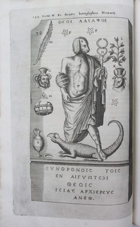 Edition originale du premier exposé complet par Kircher de sa théorie de transcription des hiéroglyphes égyptiens. Avery Architectural Library, p.529 ; Caillet, Manuel bibliographique des sciences psychiques, n°5787 ; Brunet, III, 668 ; Graesse, Trésor de livres rares, IV, p. 22 ; De Backer-Sommervogel, IV, 1052. Dans le présent ouvrage, le Père Kircher déchiffre et explique les hiéroglyphes qui couvrent l'obélisque de la fontaine de la place Navone à Rome, qui fut restauré par Le Bernin sous la direction de l’auteur et sur ordre du pape Innoncent X. Selon De Backer-Sommervogel, Kircher «alla jusqu'à mettre des hiéroglyphes de son invention aux endroits où les anciennes figures étaient absolument effacées et détruites». "Like most of Kircher's works, this book is filled with fascinating arcana, and Kircher's interpretations of Egyptian mythology and lore are of particular interest" (Merrill). Athanase Kircher (1602-1680) fut l’un des hommes les plus érudits de l’ordre des jésuites. « Ce grand savant était à la fois Physicien, Mathématicien, Orientaliste, Cabbaliste et Philologue. Il professa le grec à Coblentz ; la Philosophie, les Mathématiques, les Langues Orientales à Würtzbourg ; se retira un moment à Avignon dans la maison de son ordre ; professa encore les Mathématiques à Vienne et à Rome, puis acheva ses jours dans la retraite entièrement occupé par ses immenses travaux d’érudition. Sa ‘Restitution de la Langue Egyptienne’ était estimée du grand Champollion et tous ses ouvrages sont dignes de fixer l’attention des travailleurs » (Caillet, p. 360) « La guerre de trente ans le força d’abandonner l’Allemagne. Il se retira d’abord chez les jésuites d’Avignon, avec lesquels il passa deux années, uniquement occupé de l’étude des antiquités. Ce fut pendant son séjour en cette ville qu’il se lia d’amitié avec Peiresc, qui lui conseilla de travailler à l’explication des hiéroglyphes égyptiens ». L’ouvrage est enrichi de nombreuses citations d’auteurs arabes sur l’histoire égyptienne. La très belle illustration se compose d'un frontispice gravé par C. Bloemaert, du portrait d'Innocent X, de la grande planche dépliante figurant les 4 faces de l'obélisque et de 5 illustrations à pleine page (dont 2 gravées sur cuivre par Petrus Miotte Burgundus). Précieux exemplaire conservé dans sa riche reliure romaine décorée de l’époque, avec les tranches dorées et d’élégants fermoirs ciselés. Provenance : tampon d’une bibliothèque privée sur le titre, autre tampon au verso du portrait.