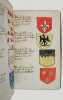 Edouard Rouveyre, Editeur Paris 1895 2 volumes in-folio ( 375 X 255 mm ) de 678 pages ( pagination continue,avec Table des Maisons et Familles dont les Armoiries sont représentées et blasonnées en ce Livre ), brochés sous couvertures maroquinées bordeaux richement décorées de motifs dorés. Très nombreuses planches, tableaux dépliants et illustrations in-texte. Luxueuse publication en fac-similé de l'édition 1660 imprimée sur un beau papier vergé. Dos fendus, parfait état intérieur, volumes non rognés, exemplaire à relier.La vraye et parfaite science des armoiries ou l'indice armorial de feu Maistre Louvan Geliot, Advocat au parlement de Bourgogne. Apprenant, et expliquant sommairement les mots & figures dont on se sert au blason des armoiries, & l'origine d'icelles. Augmenté de nombre de termes, & enrichy de grande multitude d'exemple des armes des familles tant francoises qu'estrangeres, des institutions des ordres & de leurs colliers, des marques des dignités & charges, des ornemens des escus de l'office des Roys, des herauds, & des poursuiuans d'armes, & autres curiosités despendantes des armoiries.