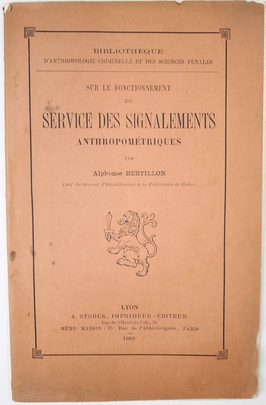 Rapport adressé à Louis Herbette (directeur de ladministration pénitentiaire) : "Le répertoire des signalements anthropométriques commencé en janvier 1883 compte actuellement 60 000 signalements et a amené tant à Paris qu'en province la reconnaissance d'environ 1500 récidivistes écroués sous faux noms dont la véritable identité n'a été retrouvée que grâce à l'intervention de l'Administration pénitentiaire et du service spécial près la Préfecture de police." De la Bibliothèque d'anthropologie criminelle et des sciences pénales. Bon exemplaire. /// In-8 de 22 pp. Broché, couverture imprimée. ////