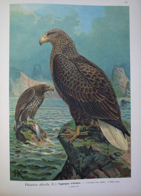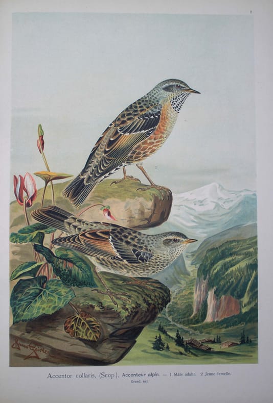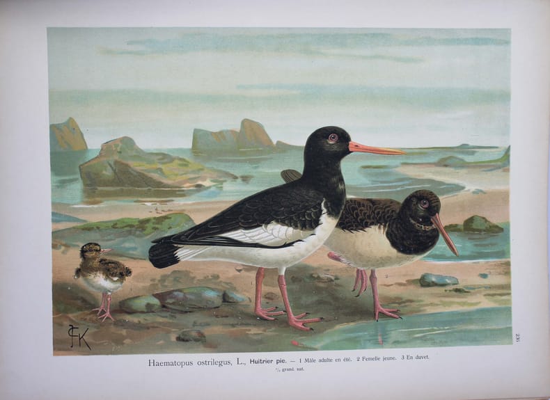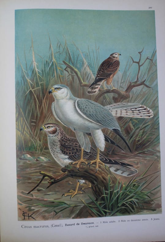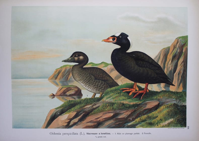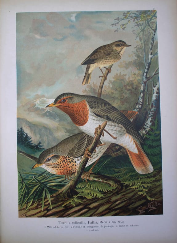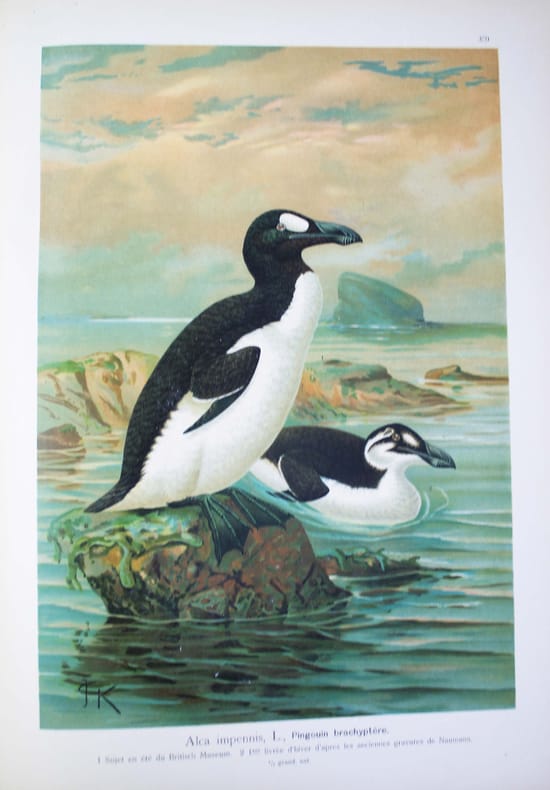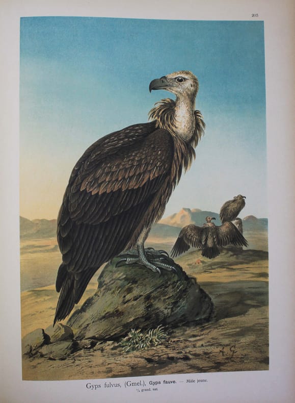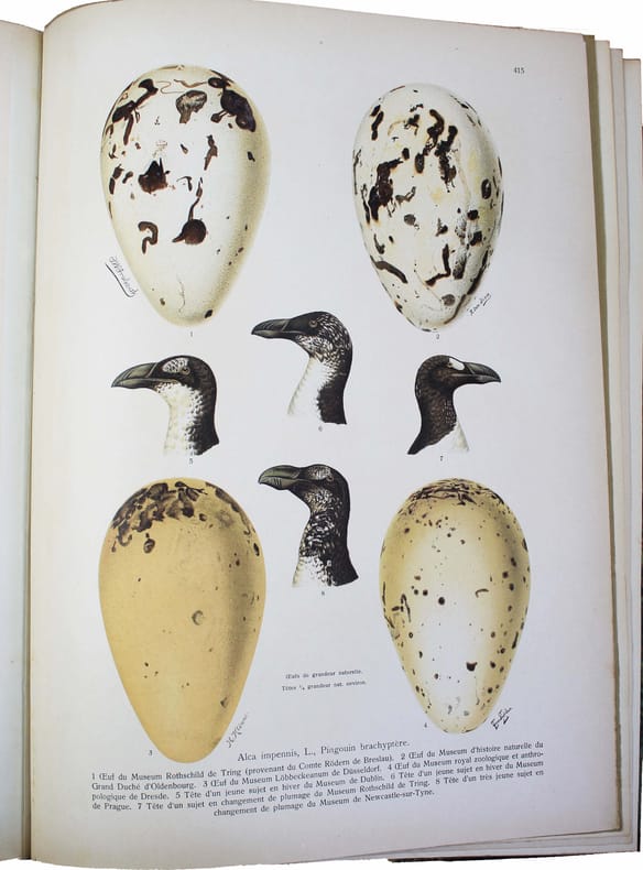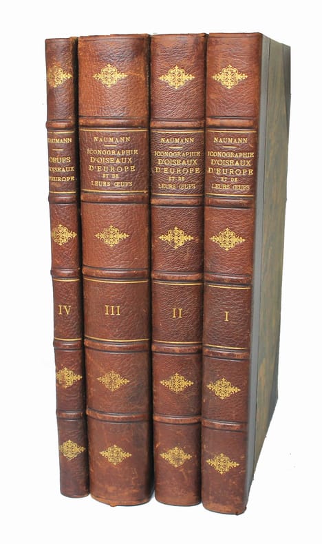 Ce magnifique iconographie ornithologique est illustrée de 413 lithographies. Elles sont toutes, sauf 5, en couleurs. Cette édition française a été publiée à petit nombre ; elle est beaucoup plus rare que l'édition allemande de 1897-1905. La collation de l'ouvrage est peu complexe, car il commence à la planche 3, il y a 4 planches bis, 5 planches n'existent pas, une planche en contient deux. Exemplaire complet, conforme à la table des planches. Léger défaut de papier dans la marge basse des 8 premières planches du dernier volume, qui est sur les oeufs. Couleur du dos passée. Bel exemplaire. /// 4 volumes in folio de 24, (2) pp., 413 planches. Demi-maroquin vert, dos à nerfs orné (Reliure de l'époque.) //// This wonderful ornithological iconography is illustrated with 413 lithographs. They are all, but 5, in color. This French edition was published in small number and is much rarer than the German edition of 1897-1905). The collation of the work is a bit complex, as it starts with plate 3, there are 4 plates bis, 5 plates do not exist and one plate contains two. Complete copy, according to the table of plates. Slight paper defect in the lower margin of the first 8 plates of the last volume which is on eggs. Color of the spine faded. A very nice copy. /// PLUS DE PHOTOS SUR WWW.LATUDE.NET