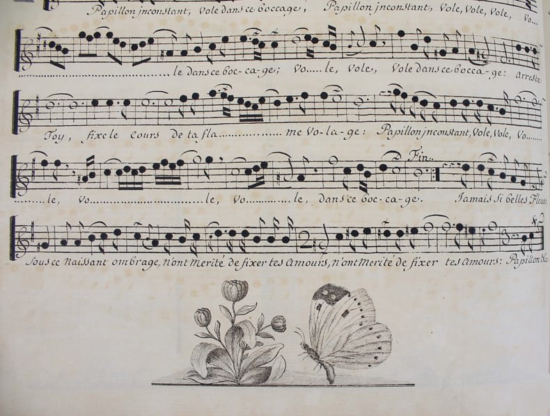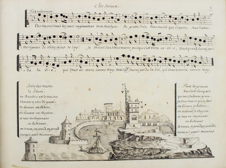 Paris, L’Auteur, Boivin, Le Clerc, Paris, L’Auteur, Boivin, Le Clercs. d. (v. 1747) ; petit in-4 oblong, broché. - Titre gravé et 35 pp. de partition gravée. Recueil de 27 airs et 3 parodies tirés du ballet Daphnis et Chloe de Joseph Bodin de Boismortier.