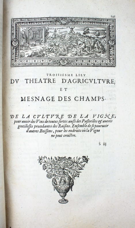 Genève, Slatkine, 1991, in-8 rel. skiv., 997 p., réimpression de l'édition de 1605 réalisée à l'initiative du Comité National Olivier de Serres, préface d'Etienne Wolff, introduction d'André Cauderon, bandeaux, lettrines et culs-de-lampe, très bon état.