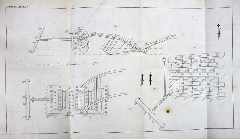 Extrait des Annales de l'agriculture française, tome XI.Jean-Louis Trochu (1790-1861), fondateur de la ferme expérimentale de Bruté (Belle-île en Mer), n'était autre que le père du futur général Louis-Jules Trochu. Toute une histoire familiale se révèle derrière notre titre en apparence anodin. Les travaux de défrichement et de mise en culture par Simon Bruté de Rémur (1728-1786) du vaste domaine qu'il avait acheté lors de l'afféagement de l'île (1768) ayant préalablement échoué, la veuve de Jean-Marie Trochu, père de Jean-Louis, mort en 1805, racheta le "domaine de Bruté". Dès que son fils fut en mesure de s'occuper du domaine, une vaste forêt de pins fut plantée sur les landes incultes, le reste du domaine est mis en valeur et devient florissant. En effet, promoteur des nouvelles méthodes de faire-valoir agricole, il possédait un vaste domaine qui a servi de modèle dans tout le Morbihan. Le domaine est devenu en 1908 une ferme école pour les mineurs délinquants, et après 1971, la colonie de vacances des enfants du personnel du Ministère de la Justice.Exemplaire d'Alexandre Godart, avec cachet humide. Probablement Alexandre Godart de Juvigny (1786-1856), de Châlons sur Marne, viticulteur et député. - - VENTE PAR CORRESPONDANCE UNIQUEMENT