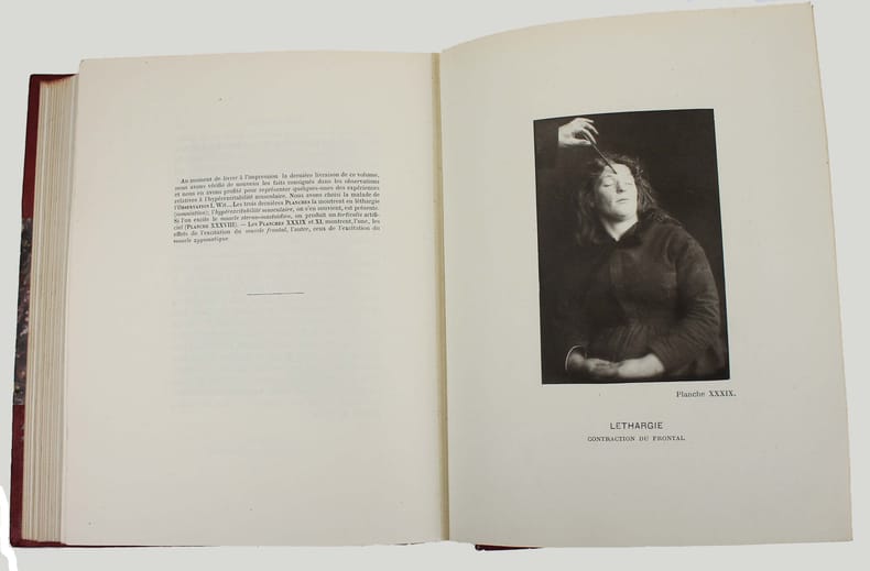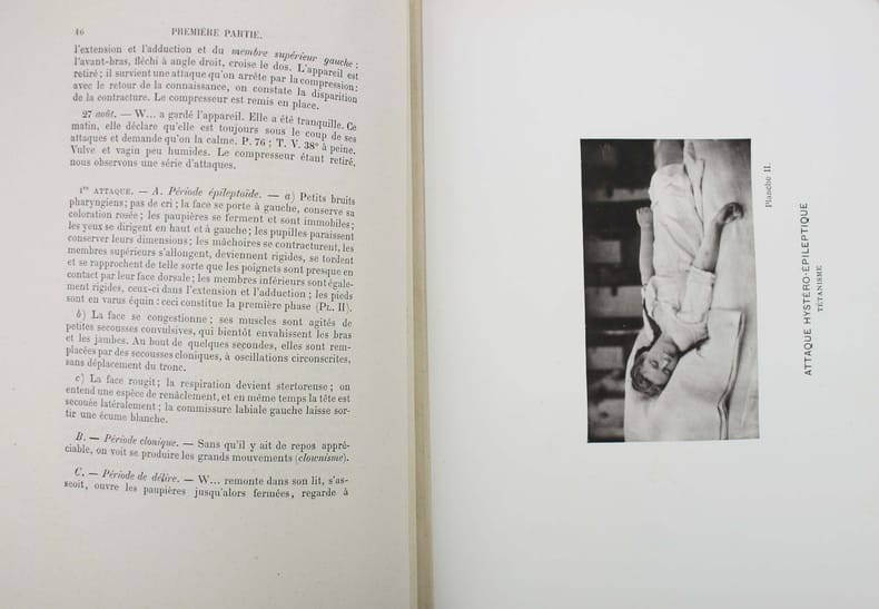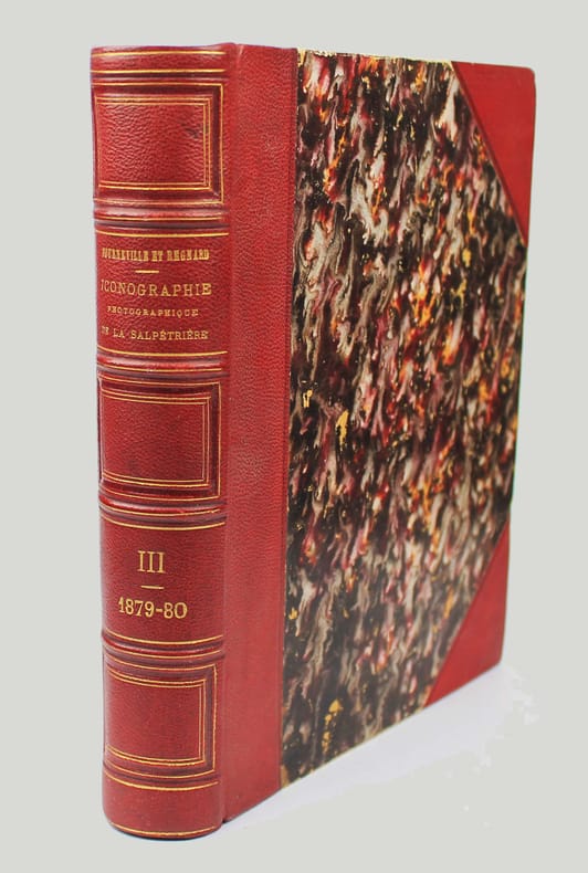 Première édition. Volume 3 seul (sur 3). Illustré par 40 planches de malades en crise (hystérie et épilepsie). Les prises de vue ont été faites par Regnard. Les photos sont en photolithographie. Garrison-Morton 4558.1. Norman 291. Bel exemplaire. /// In-4 de (4), 260, (2) pp., 40 planches h.-t. Demi-chagrin rouge, dos à nerfs orné, tête dorée. (Reliure de l'époque.) //// First edition. Volume 3 only (of 3) with 40 collotype plates. "The Iconographie photographique de la Salpêtrière (1876-80) is a landmark publication in medical photography. This collection of texts and photographs represents the female patients of Dr. Jean-Martin Charcot at the Salpêtrière hospital and asylum during the years of his tenure as director. The patients, diagnosed primarily with hysteria or epilepsy, were treated at the asylum even as they acted as experimental subjects for Charcot's development of the hysteria diagnosis. This collection represents a transformative moment in the history of the diagnosis, treatment, and representation of mental illness" (Yale University). /// PLUS DE PHOTOS SUR WWW.LATUDE.NET