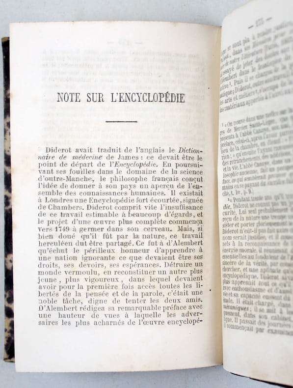 Charmante édition "de poche", publiée par la Bibliothèque Nationale. On trouve à la fin une "Note sur l'Encyclopédie". Papier un peu bruni. Très bon exemplaire. /// In-16 de 192 pp. Demi-basane violine, dos orné. (Reliure de l'époque.) //// Charming "pocket" edition, published by the Bibliothèque Nationale. There is a "Note sur l'Encyclopédie" at the end. Paper a little browned. A very good copy.