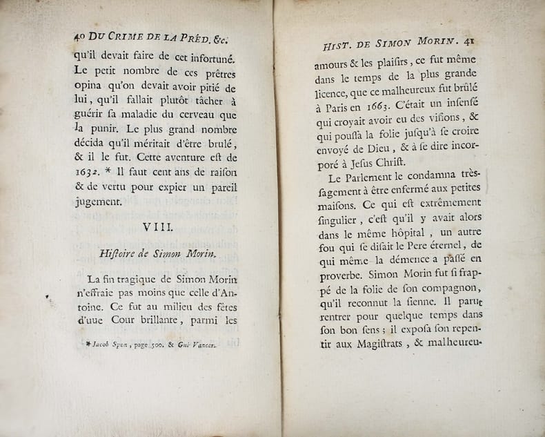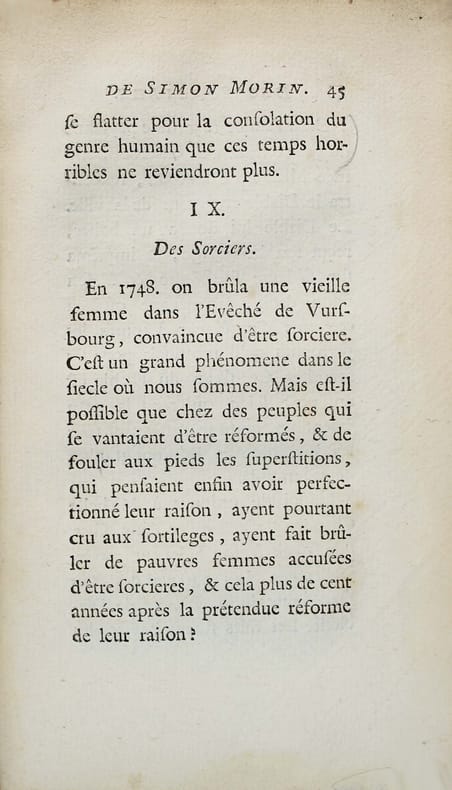 Contrairement à ce qu'indique le titre, il s'agit d'un ouvrage autonome, inspiré par l'ouvrage de Beccaria, plus que son commentaire. Voltaire s'y applique à une critique de la justice d'Ancien Régime et du rôle de la religion dans la société, examinant les peines contre les hérétiques, les hérésies, la condamnation au bûcher de Simon Morin qui se croyait "envoyé de Dieu", celle de Michelle Chaudron, accusée de sorcellerie, etc... Seconde édition, imprimée sans doûte à Lyon selon le catalogue de la BNF. La première avait parue l'année précédente à Genève. Quelques annotation d'un lecteur du XIXe. Des manques de papier au dos. /// In-12 de (4), 121, (1), iii pp. Caronnage de percaline verte du XIXe //// Contrary to the title, this is a stand-alone work inspired by Beccaria's work, rather than a commentary on it. Voltaire applies himself to a critique of Ancien Régime justice and the role of religion in society, examining punishments against heretics, heresies, the condemnation to the stake of Simon Morin who believed himself to be "sent by God", that of Michelle Chaudron, accused of witchcraft, etc.... Second edition, probably printed in Lyon according to the BNF catalog. The first had appeared the previous year in Geneva. Some annotations by a 19th-century reader. Paper missing from spine.
