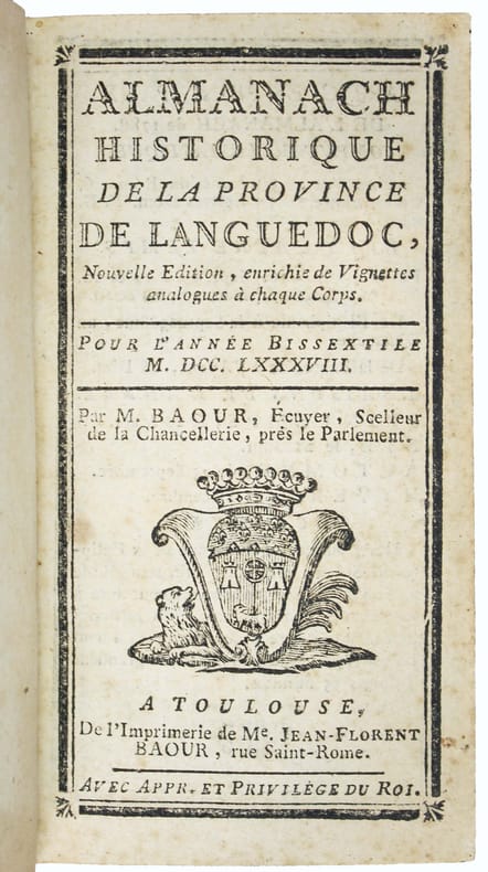 Bon exemplaire. /// In-16 de 372, (8), 4 pp. Demi-basane brune, dos orné. (Reliure de l'époque.) ////