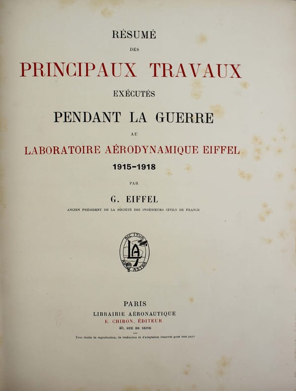 Envoi manuscrit sur le faux-titre : "A Michel Le Grain, affectueux souvenir de son grand père, 20 Mai 1920. G. Eiffel". Première édition. Les voilures d'un avion. Carènes de dirigeables. Hélices. Moulinets. Avions. Projectiles. Radiateurs. Souffleries aérodynamiques. Méthodes graphiques employées au laboratoire. Complet d'un demi-feuillet d'errata inséré en face de la page 1. Bon exemplaire. /// In-folio de XX, 212 pp., 3 planches h.-t. Demi-chagrin brun à coins, dos à nerfs orné. (Reliure de l'époque.) //// /// PLUS DE PHOTOS SUR WWW.LATUDE.NET