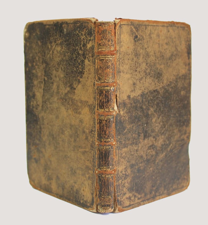 Rare bible éthiopienne manuscrite sur peau de vélin. Éthiopie, XIXe siècle. Petit in-4 de (134) ff. sur peau de vélin, 13 figures polychromes à pleine page. Texte écrit à l’encre noire rubriqué sur deux colonnes, avec des titres et des noms de saints écrits en rouge. Exemplaire réglé à la pointe sèche, piqûres de réglure dans les marges extérieures. Relié en veau estampé à froid de l’époque sur ais de bois, dos lisse bien présent. Reliure de l’époque. 205 x 148 mm.