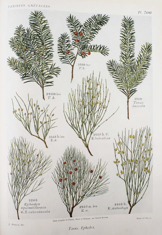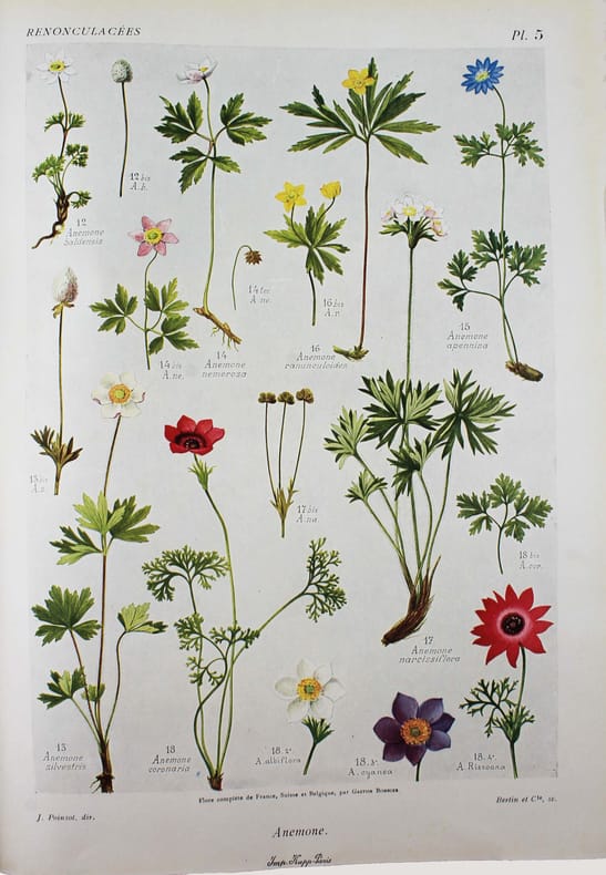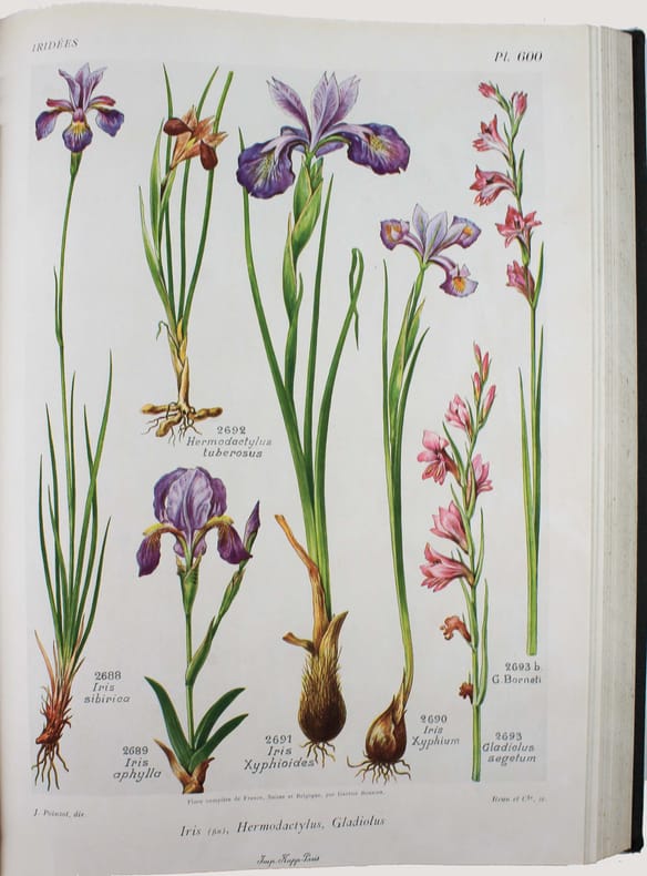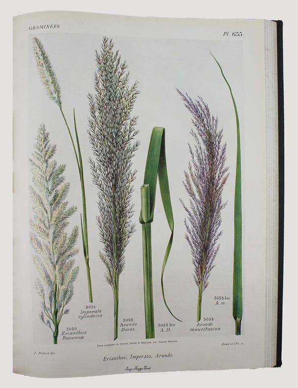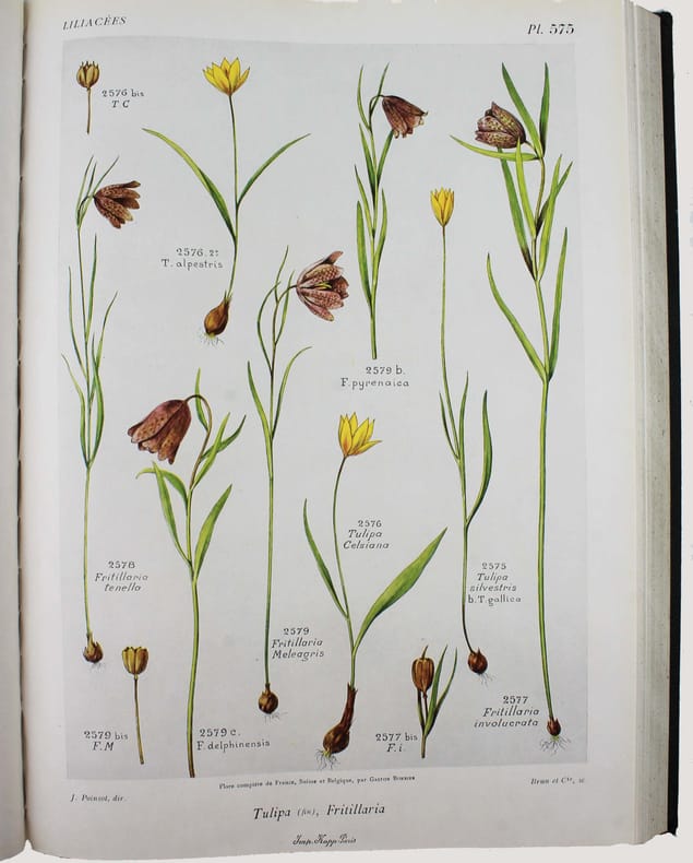 PREMIERE EDITION. Encore aujourd'hui la seule flore française quasiment exhaustive et d'utilisation pratique. Ouvrage indispensable à tout amateur ou professionnel de la botanique. Elle est illustrée de 721 planches en couleurs portant plus de 7 800 illustrations. Cette première édition est la plus belle, tant par la qualité du papier, que par la justesse des coloris des planches. Exemplaire complet, relié en trois volumes pour le texte et les tables et en 2 volumes pour les planches. On joint à cet exemplaire, dans une reliure similaire, les tables de la réédition, qui ont été reliées à part par un amateur pour une consultation plus facile. (Les tables sont donc en double dans cet exemplaire, en première et seconde édition). Petits frottements aux reliures. Exemplaire en très bon état. /// 6 volumes in-4 de Demi-chagrin vert, dos à nerfs. (Reliure de l'époque.) ////