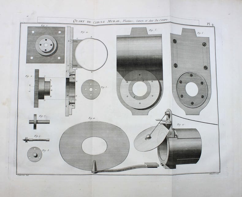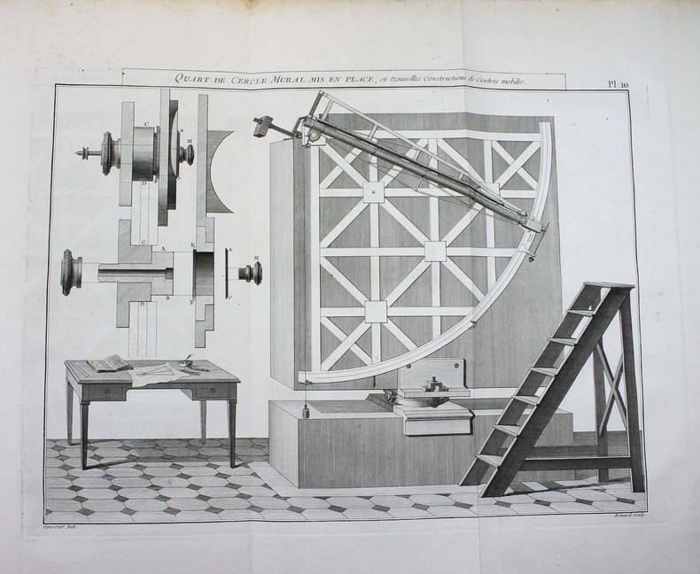 Première édition. Elle a été publiée par l'Académie des Sciences dans la série de la "Description des Arts et Métiers". Illustré par 14 belles planches gravées sur cuivre dépliantes. Pierre-Charles Le Monnier (1715-1799), astronome privilégié de Louis XV, est rentré très jeune à l'Académie des Sciences et faisait parti, avec Maupertuis et Clairaut, de l'expédition en Laponie de 1736 à 1737 pour mesurer la longueur d'un degré de méridien. Voir la longue notice que Jérome de Lalande, qui a été son élève, consacre à la vie et aux travaux de Le Monnier, Biblio. astronomique pp. 819-826. DSB 8, 178. Papier très légèrement bruni; exemplaire grand de marges. /// In-folio (46,5 x 35 cm) de IV, 60 pp.,14 planches. Cartonnage papier éponge postérieur. //// First edition. First edition. Published by the Academy of Sciences in the series Description des Arts et Métiers (Description of Arts and Crafts). Illustrated by 14 beautiful folding copper engravings. Pierre-Charles Le Monnier (1715-1799), Louis XV's favorite astronomer, joined the Académie des Sciences at a very young age and, along with Maupertuis and Clairaut, took part in the 1736-1737 expedition to Lapland to measure the length of a degree of meridian. See the lengthy note that Jérome de Lalande, who was his student, devotes to the life and work of Le Monnier, Biblio. astronomique pp. 819-826. DSB 8, 178. Paper very slightly browned; copy with large margins. /// PLUS DE PHOTOS SUR WWW.LATUDE.NET