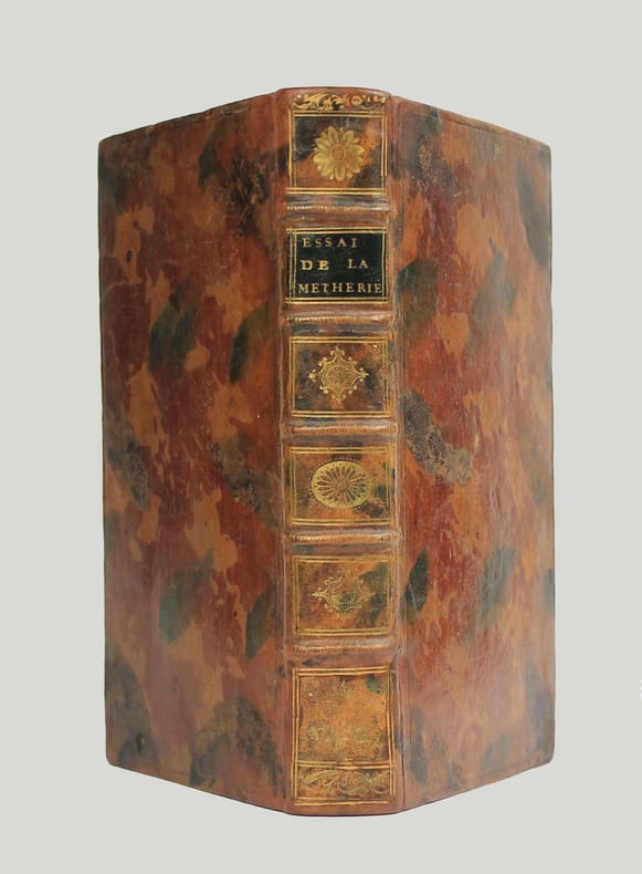 Première édition. La Métherie passe en revue les connaissances de son temps sur les différentes espèces d' "airs" ainsi que les expériences et découvertes de Lavoisier (avec lequel il s'opposait), Priestly, Scheele... La Métherie a été pendant plus de 15 ans le rédacteur en chef du mensuel "Observations sur la physique", devenu par la suite "Journal de physique". Provenance : Exlibris de "La bibliothèque de Paul Macors". Il a été syndic des pharmaciens de Lyon et professeur de chimie. Bon exemplaire. /// In-8 de (4), 474, (2) pp. Veau jaspé, dos à nerfs orné, tranches marbrées. (Reliure de l'époque) //// First edition. Cole 742: "The book is a survey of existing informatin concernig various kinds of airs and the experiments and discoveries of Lavoisier, Priestley, Scheele and others." Duveen 335. For more than 15 years, La Métherie served as editor-in-chief of the monthly journal 'Observations sur la physique', which later became 'Journal de physique'. Provenance: Exlibris of La bibliothèque de Paul Macors. He was president of the Lyon Pharmacists' Association and a professor of chemistry. A fine copy. DSB 7, 602. /// PLUS DE PHOTOS SUR WWW.LATUDE.NET