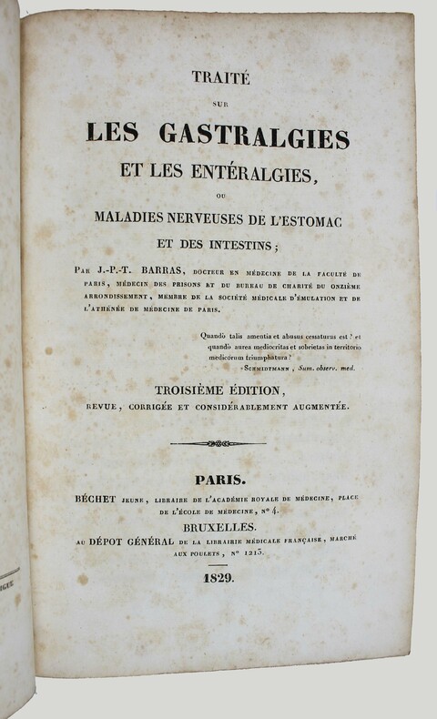 BARRAS Traité sur les gastralgies et les entéralgies. Ou Maladies nerveuses ..