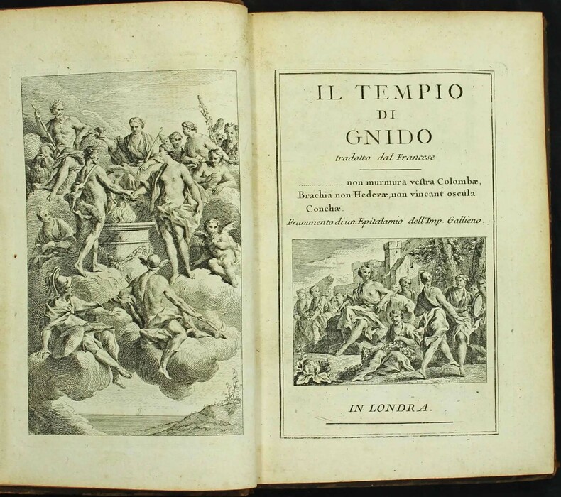 in Londra [ Paris ] [ Huart, vers 1742 ] 1742 in 8 (18,5x12) 1 volume reliure plein veau fauve de l'époque, dos lisse très orné, pièce de titre beige, filet doré sur les coupes, tranches teintées rouge, frontispice gravé, titre gravé avec vignette en taille-douce, VIII et 111 pages, avec 8 vignettes gravées à mi-page et non signées, grandes marges. Petite étiquette ex-libris de l'époque de Monsieur de Ponnat, avec de fines annotations marginales anciennes (de Monsieur de Ponnat?, traductions de mots du texte en français). Très bel exemplaire, finement relié ( Photographies sur demande / We can send pictures of this book on simple request )