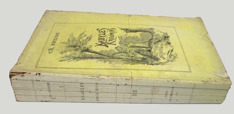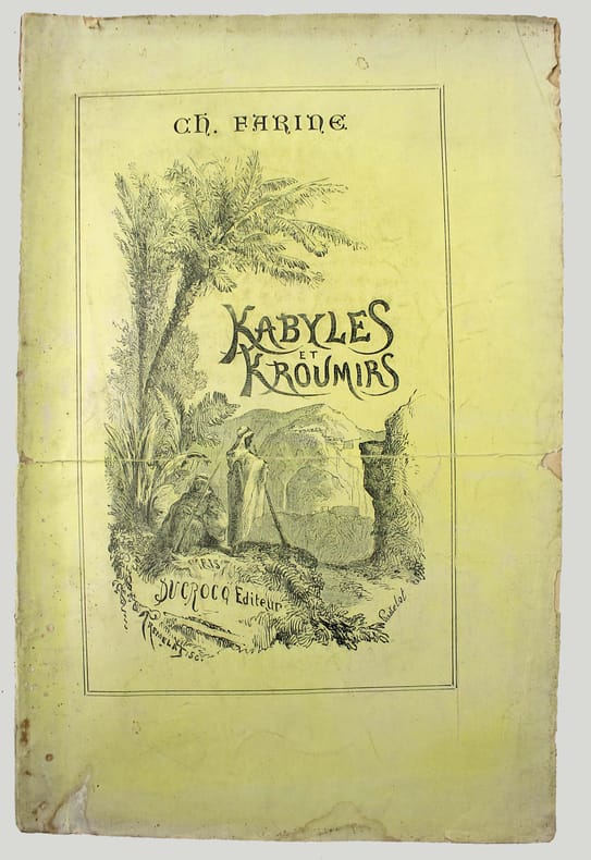 Seconde édition, publié pour la première fois sous le titre de "A travers la Kabylie." Des chapitres ont été refondus et d'autres ajoutés à cet intéressant récit de voyage. Illustré par de nombreuses gravures dans le texte d'après les croquis de l'auteur. Jolie couverture illustrée de couleur jaune. Dos fendu. /// In-8 de Frontispice, (6), 423, (1) pp., 23 gravures in-texte. Broché, couverture imprimée. ////