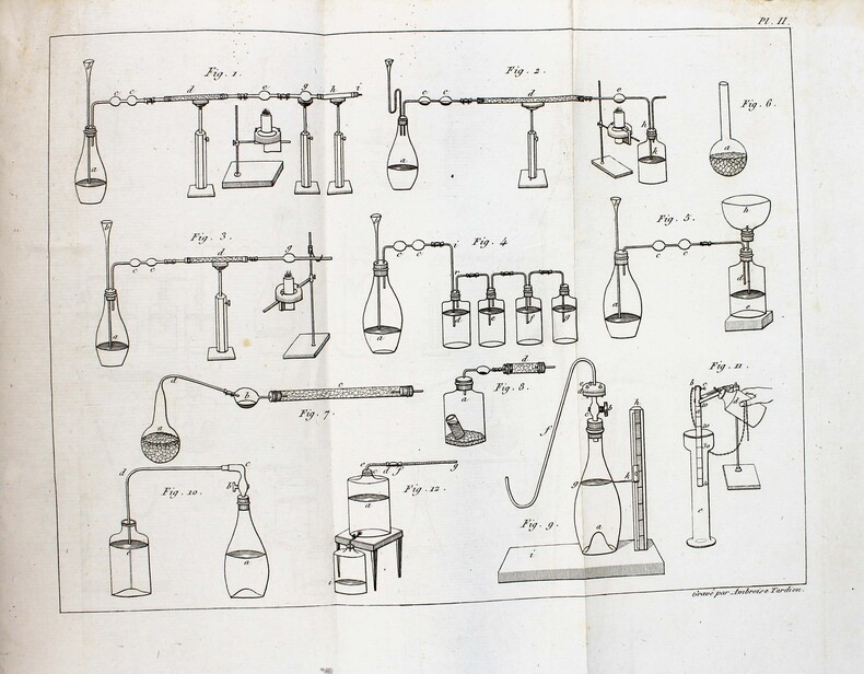 Première édition en français. Traduction de Jourdan sur la seconde édition allemande. Cet ouvrage de référence à son époque, suit la nomenclature de Berzélius. Rose consacre un chapitre pour chacun des éléments. Bon exemplaire. Cole 1126 (éd. anglaise). Duveen 516 (éd. de 1843). /// 2 tomes en 1 volume in-8 de XV, 604, XIV-608, 97 pp. , 2 planches dépl. h.-t. Demi-basane brune, dos orné, tranches jaunes. (Reliure de l'époque.) ////