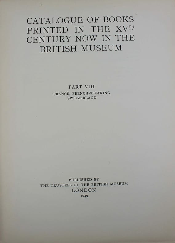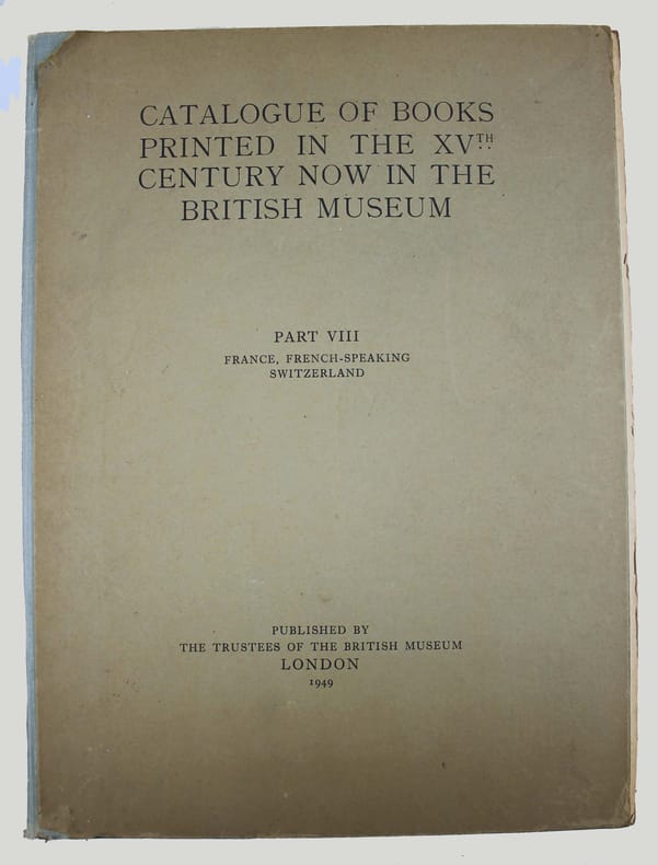 Description très complète des incunables, imprimés en France et en Suisse francophone. /// In-folio de LXXXVII, (1), 441, (1) pp./ 21, (1) pp., LXXII plates. Cartonnage de l'éditeur. ////
