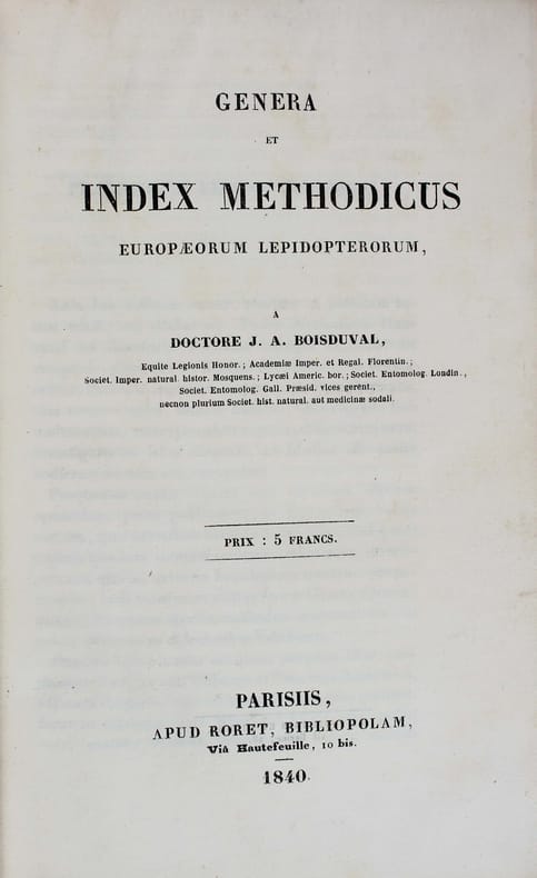 Paris, Roret, 1840, in-8, 238 pp, Demi-maroquin rouge, dos à nerfs orné de filets à froid, tranches mouchetées, Deuxième édition en partie originale dont la première a paru en 1829. Cet ouvrage fut le guide incontournable fournissant toutes les informations nécessaires pour le classement des collections de papillons amateurs ou institutionnelles durant le XIXe siècle. Gouillard, Histoire des entomologistes français 1750-1950, p. 49. Ex-libris de la Bibliothèque de l'Institut catholique de Paris, don du Dr Jacques Liouville, ex-libris Révil, naturaliste et préparateur au Muséum d'histoire naturelle et cachets du même Institut. Quelques petites épidermures, frottements et taches à la reliure. Bon état intérieur. Couverture rigide