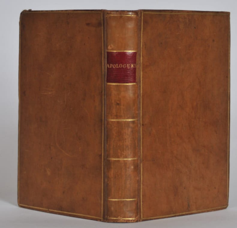 Paris , Perronneau, Paris , Perronneau1806 ; petit in-12, veau blond, encadrement à filet doré, dos à filet doré, pièce de maroquin rouge, encadrement doré à l'intérieur, tranche dorée, reliure de l'époque. 256 pp. 1 f. d'errata. EDITION ORIGINALE rare, parue sans nom d'auteur. Il y aura d'autres éditions avec le nom du Baron Dutremblay. Ce sont les fables d'un petit poète oublié du premier Empire. Certaines pièces concernent la gastronomie : l'enfant et les confitures, le cerisier, l'orange, le pommier dépouillé, la carpe et le goujon, les perdreaux, les deux melons, la poulette... Monglond VIII, 399 - Barbier, I, 254. Exemplaire du célèbre bibliophile Mérard de Saint Just (1749 - 1812) ancien Maître d'hôtel de Monsieur, futur Louis XVIII. Cet amateur passionné s'était constitué une superbe bibliothèque. Non content de collectionner, il se mit également à produire des livres, tous tirés à très petit nombre (entre 12 et 50 exemplaires) pour son plaisir et celui des bibliophiles futurs. Voyez la notice que lui consacre Guigard II, 351. Ce volume porte son ex - libris autographe sur la garde. Envoi autographe de l'auteur (raturé). A la fin du volume se trouvent 5 feuillets avec 4 poèmes autographes de l'auteur qui ne figurent pas dans le volume. Pour sa rareté et son intéressante provenance, ce petit volume est une véritable curiosité bibliophilique.