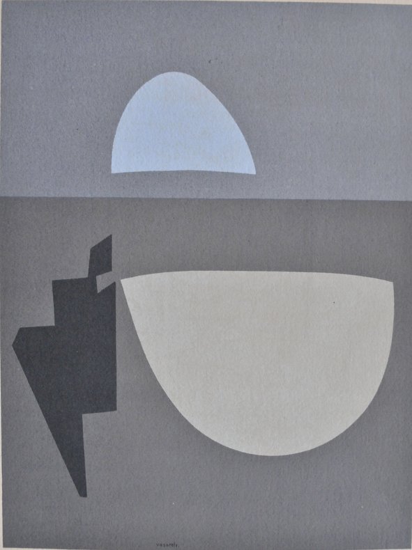 slnd, slndvers 1960 ; 20 x 28 cm. sur une feuille de 28 x 38 cm., Sérigraphie à 5 tons. Au dos, le titre “Bangor”, nom de l’artiste, dimension du tableau original, 130 x 97 et date 1950-51.