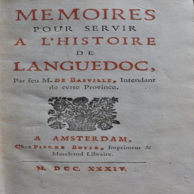 Dans sa reliure d'origine. Bien complet des 2 planches dépliantes. Amsterdam, Ryckhoff le Fils, 1736. Hardcover In-12, [dimension: 162 x 105 mm] de 334 pp., 2 tableaux dépliants hors-texte. État du Languedoc à la fin du XVIIè et au début du XVIIIè, rédigé par celui qui en fut l'Intendant de 1685 à 1718 : le gouvernement, son organisation, les impositions, la noblesse, le commerce et les manufactures. Basville a été intendant du Languedoc pendant au moins 13 ans sous le règne de Louis XIV. Ces mémoires, terminées en 1698, furent publiées de manière posthume. En dehors de cet aspect historique, elles constituent un véritable guide de la province avec des chapitres sur le gouvernement (ecclésiastique, militaire, judiciare, financier), les droits et taxes royaux (gabelles, douanes, etc...), et la géographie. Plein veau moucheté, dos à nerfs orné de caissons dorés, tranches marbrées. Très bon Amsterdam Boyer 1734 1 volume in-8°.