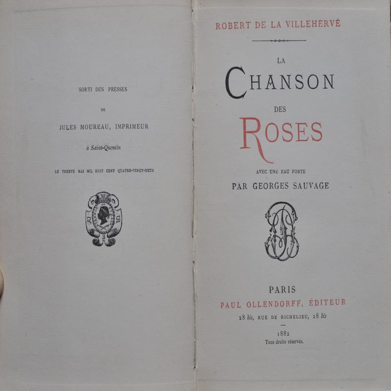 Paris, Ollendorff, Paris, Ollendorff1882 ; in-12, cartonnage bradel percaline crème, non rogné, couverture. (Reliure de l’époque) 3 ff., 166 pp.ÉDITION ORIGINALE ornée d’une eau-forte hors-texte du peintre graveur Georges Sauvage (Caen 1845 - Le Havre 1918).Robert de La Villehervé (Ingonville 1849 - Le Havre 1919) est un poète parnassien. Il fut rédacteur au Courrier du Havre de 1871 à 1877, collaborateur de la République des Lettres en 1877-78 et secrétaire de rédaction du journal Le Globe en 1878-79. - Braquehais. Nouvelles Biographies havraises (1886) p. 36-37 - Lechevalier. Bibliogr. de l’arrondiss. du Havre n° 4954. Voir aussi Van Bever. Les poètes du terroir tome 1 p. 458 qui relate cette anecdote : “Victime en sept. 1893 dans sa propriété des Greffières, près de Fontainebleau, d’une tentative d’assassinat de la part d’un domestique congédié, il fut laissé pour mort par le meurtrier et ne survécut pas sans peine à de nombreuses blessures. Il a donné le récit de cette agression dans un livre poignant Les Impressions de l’assassiné (1894)”.ENVOI AUTOGRAPHE du poète à Jacques Madeleine. Jacques Madeleine, de son véritable nom Jacques Normand (Paris 1859 - Châtel-Guyon 1941) était un poète et écrivain spécialiste de la littérature des XVIe et XVIIe siècles. Dans sa jeunesse, il avait fondé avec G. Courteline son camarade de collège la revue Paris Moderne. Il fut le secrétaire de Th. de Banville. Lecteur chez Fasquelle, il avait rejeté le manuscrit de Du côté de chez Swann. Il vivait à Veneux-les-Sablons dans la forêt de Fontainebleau. C’est en voisin, de Moret-sur-Loing, que La Villehervé lui adresse la lettre jointe au volume, 1 p. in-8, datée du 3 août 1882 pour le remercier de lui avoir consacré un article flatteur. Joint également, 3 photographies du buste en bronze de La Villehervé, par Raoul Verlet, qui se trouve dans un square du Havre.