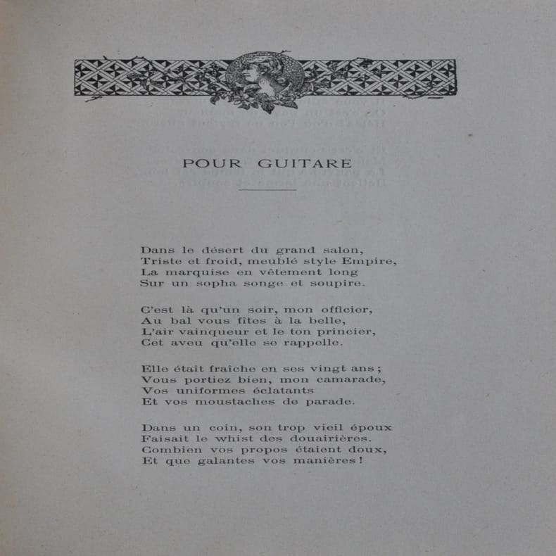 Troyes, Imprimerie et lithographie Caffé, Troyes, Imprimerie et lithographie Caffé1897 ; in-8, broché, couv. imprimée. 2 ff., IV pp. (préface), pp. 11 à 126, 1 f. blanc avec papillon errata collé.ÉDITION ORIGINALE du premier recueil de vers de Lucien Morel-Payen, alors âgé de 29 ans ; il n’avait publié que 2 pièces de théâtre : Flagrant délit, une comédie en 1 acte et Napoléon à Troyes, drame en 6 actes. Né à Troyes en 1868, Morel-Payen fut professeur de sixième au lycée de sa ville, puis conservateur de la Bibliothèque Municipale de Troyes. On lui doit divers écrits historiques sur Troyes, des guides et monographies sur des personnalités de l’Aube.Préface enthousiaste du poète troyen Émile Predl “... Tout cela a été vécu dans la chair et par l’esprit. Oui, tantôt en la saison des voyages, à travers les pays consacrés par tant d’autres amoureux du “toujours plus loin”, tantôt les pieds sur les chenêts du foyer, durant les minutes de silencieuse solitude où la pensée élève, au-dessus de nous, son murmure musicalement berceur...” Le recueil s’ouvre sur Les Corbeaux du Colisée, un souvenir de Rome. Le Salon rimé est une série de chroniques en vers sur les tableaux de l’exposition des peintres de l’Aube à Troyes en 1892. Au poète Célestin Moriat, il dédie un Sonnet ultra-Coppée. ENVOI AUTOGRAPHE Au poète Louis Morin, souvenir amical d’un confrère. Dos de la couverture abîmé.
