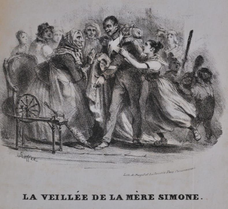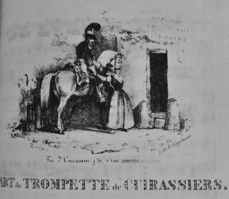 Beau recueil factice constitué à l’époque. Chansonnettes, airs tirés d’opéras comiques arrangés pour guitare ou piano, barcaroles... 35 illustrations lithographiques par Engelmann, Langlumé, Piaget et Lailavoix, Marlet d’après Raffet, Le Camus, Cellier, Charlet, Bellangé, Cardel, etc.- N°2 De la Dame Blanche. Opéra comique. Air chanté par Mr. Ponchard, paroles de Mr. Scribe, musique de Mr. A. Boildieu arrangé pour la guitare par Meissonnier jeune. Paris, Janet et Cotelle ; 11 pp. (la première blanche) de partition gravée avec paroles- Le Maçon opéra comique. Musique de D. F. E. Auber. Duo chanté par Mme Rigaut et Boulanger, accompagnement de guitare par Defrance. Paris, Pleyel ; 8 pp. de musique et paroles.- Fra Diavolo opéra comique en trois actes. Paroles de M. Scribe avec accompagnement de guitare par Meissonnier jeune. Paris, Troupenas et Cie, Londres, E. T. Latour, Mayence et Anvers, chez les fils de B. Schott, (1840) ; 1p. (titre et table des morceaux), 5 pp. de musique (n° 9 Coupets)- N°9 Masaniello. Ah mon ami que ces pensées. Paroles de Mr. Moreau et Lafortelle, musique de Carafa arrangée pour la guitare par Meissonnier jeune. Paris, Frère ; 3 pp. - N°15 Masaniello. Couplets chantés par Mr. Valère. Paroles de Mr. Moreau et Lafortelle, musique de Carafa arrangée pour la guitare par Meissonnier jeune. id., ibid. ; 3 pp.- Guillaume Tell. Opéra en quatre actes. Paroles de MM. Jouy et Hypolite Bis. Musique de G. Rossini avec accomp. de guitare par Meissonnier jeune. Paris, Troupenas, Londres Goulding et Dalmaine... 1 p. (titre et table), 5 pp. (n°24 Prière à une ou de voix chantée par MMmes. Cinti-Damoreau et Mori), 11 pp. (nouveau titre et N°17 Air chanté par Mme. Cinti-Damoreau).- La Muette de Portici. Opéra en 5 actes. Paroles de MM. Scribe et Germain Delavigne, musique de D. F. E. Auber avec accomp. de guitare par Meissonnier jeune. Paris, Troupenas ; Duo chanté par MM. A. Nourrit et Dabadie 15 pp., Barcarole 5 pp.- La Fiancée. Opéra comique en trois actes. Paroles de Scribe, Musique d’Auber avec guitare par Meissonnier jeune. Paris, Troupenas, N°9 Canon 13 pp., Cavatine 7 pp., Duo chanté par Mme Pradher et Mr Chollet 15 pp., N°2 Couplets chantés par Me Lemonnier 7 pp.- Le Hussard de Felsheim vaudeville en trois actes. Paroles de Mrs St. Hilaire, Dupeuty et de Villeneuve. Rondo chanté par Mlle Pauline Geoffroy arrangé à la guitare par Melle Julia Piston. Paris, A. Petit ; 4 pp.- Le jeune Homme à la mode. Air du premier prix. Paroles de Mr. Dupeuty et de Villeneuve, musique et accompagnement guitare par J. D. Doche. Paris, l’auteur et Jouve ; 7 pp.- Je tressaille ! J’ai froid. Romance. Paroles de Mme. Desbordes Valmore, musique de C. P. Lafont. Paris, M. Schlesinger ; 3 pp. y-compris frontispice lithographique.- La Résolution inutile. Romance. Mise en musique avec accompagnement de piano. Paris, Romagnesi, 3 pp. y-compris titre-frontispice lithographique par Le Camus, imprimé par Marlet.- Je songe à toi. Romance. Paroles par Mr. G. D., musique du Chr. Lagoanère accomp. à la guitare par Romagnesi. Paris, Romagnesi, 3 pp. y-compris front. lith. Piaget et Lailavoix.- Le Savetier philosophe. Ronde mise en musique avec accomp. guitare par A. H. Brassereau. Paris, Petit ; 3 pp. y-compris front. lith. par Adolphe M., impr. par Frey.- Si ça t’arrive encore. Chansonnette. Paroles de Mr. J. Simard, musique de A. Romagnesi, accomp. guitare par Meissonnier. Paris, Romagnesi ; 3 pp. y-compris front. lith. par Marlet.- Les Bergers sont des loups. Chansonnette, paroles de Émile Barateau, musique de F. Berton fils, accomp. guitare par A. Romagnesi. Paris, Romagnesi, 3 pp. y-compris front. lith. par Cellier, impr. Piaget et Lailavoix.- Le Rendez-vous espagnol, Nocturne à deux voix, paroles de Mr. de Coupigny, mise en musique avec accomp. guitare par A. Romagnesi. Paris, Romagnesi, 3 pp. y-compris front. lith. impr. Piaget et Lailavoix.- La Veillée de Mère Simonne. Ronde villageoise. Paroles de M. Vial musique par Panseron, acomp. guitare par Meissonnier jeune. Paris, Schonenberger (1831) ; 4 pp., frontisp. lithogr. par Raffet, impr. Piaget et Lailavoix.- Le Retour du Montagnard. Tyrolienne. Paroles de Bétourné, musique de A. de Beauplan arrangé pour guitare par Meissonnier. Paris, Meissonnier, 3 pp., front. lith. par Fromentin d’après Charlet.- La Vivandière dans l’embarras. chansonnette militaire. Paroles de B. de P., musique d’A. Panseron arr. pour guitare par Meissonnier jeune. Paris, Schonenberger ; 3 pp. beau titre-frontispice par Raffet.- La Mère Bahu et la Mère Gangan ou les Voisines de village chanson dialoguée. Musique par Ed. Lhuillier. Paris, Schlesinger et Petitbon ; 3 pp., font. lith. signé C. D.- Le Départ du trompette de cuirassiers chanson militaire. Paroles de Jaime, musique de Ch. Plantade, acc. guitare par Meissonnier jn. S. l. n. d. ; 3 pp., front. de Charlet impr. par Engelmann.- La Cloche du soir, Nocturne à deux voix. Paroles de Ch. Didier, musique avec acc. guitare par F. Grast. Paris, Romagnesi ; 3 pp., front. lith. signé B. C. impr. Piaget et Lailavoix.- La Chapelle de Guillaume Tell, tyrolienne à 1 ou 2 voix. Paroles de Bétourné, musique d’Éd. Bruguière arrangée pour guitare par Meissonnier. P., Meissonnier jne. ; 4 pp., front. lith. par Jaimes, impr. de Melle Formentin.- Les Batelières de Brienz, barcarolle suisse. Paroles de M. Goubert, musique et acc. de guitare de F. Grast. Paris, Romagnesi ; 3 pp., front. lith. par Menut, impr. Piaget et Lailavoix.- Emma, tyrolienne. Paroles de Ulric Guttinger mise en musique par Aug. Panseron, acc. guitare par Meissonnier jne. P., Schonenberger ; 3 pp., front. lith. par Raffet, impr. Piaget et Lailavoix.- Le Chant du Pâtre, tyrolienne. Paroles A. Bétourné, mus. et acc. guitare par A. Romagnesi. P., Romagnesi, 3 pp., front. lith. par Tirpenne d’après Adam, impr. Piaget et Lailavoix.- Jeune Brigitte, ronde. Parolles de M. ***, muis